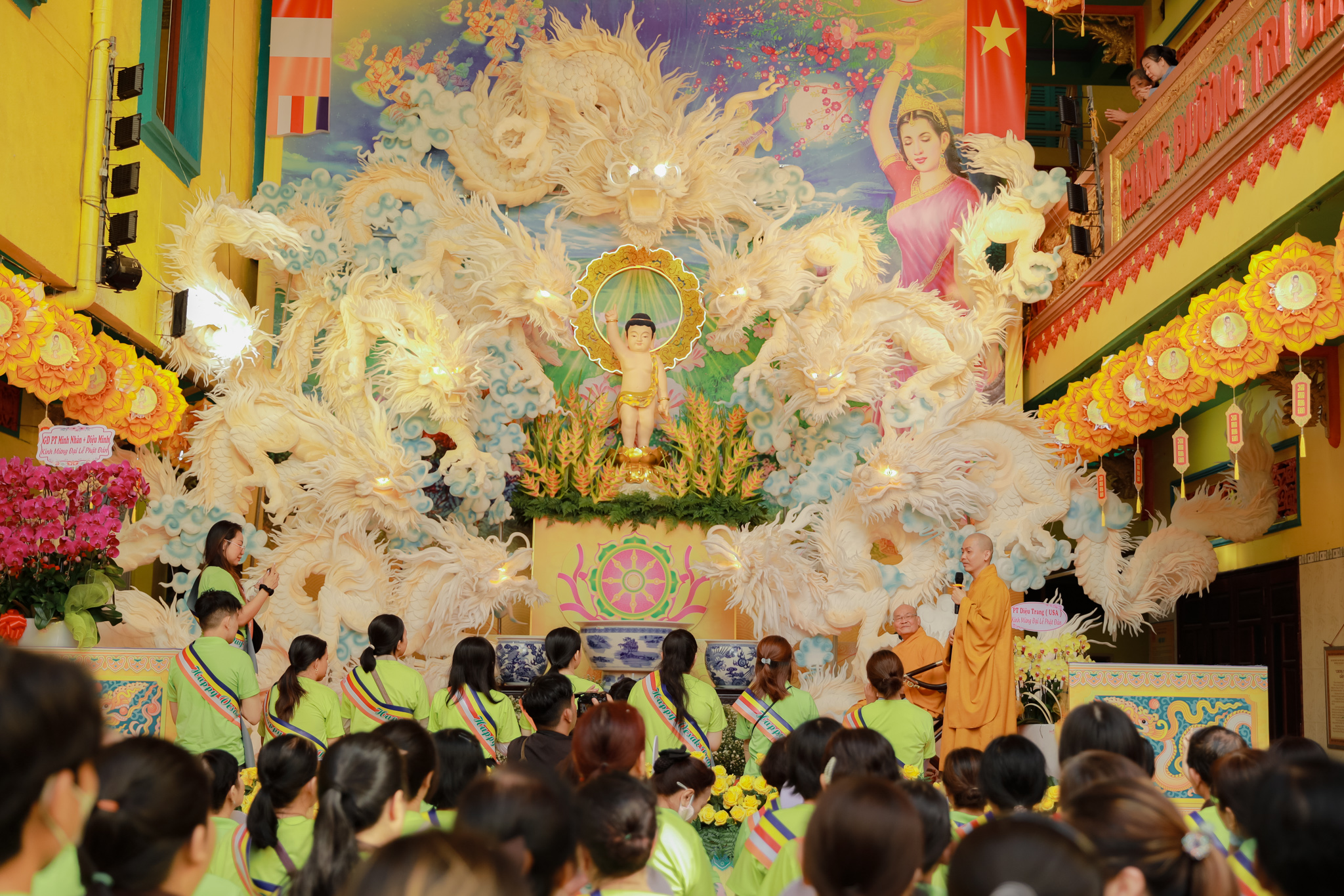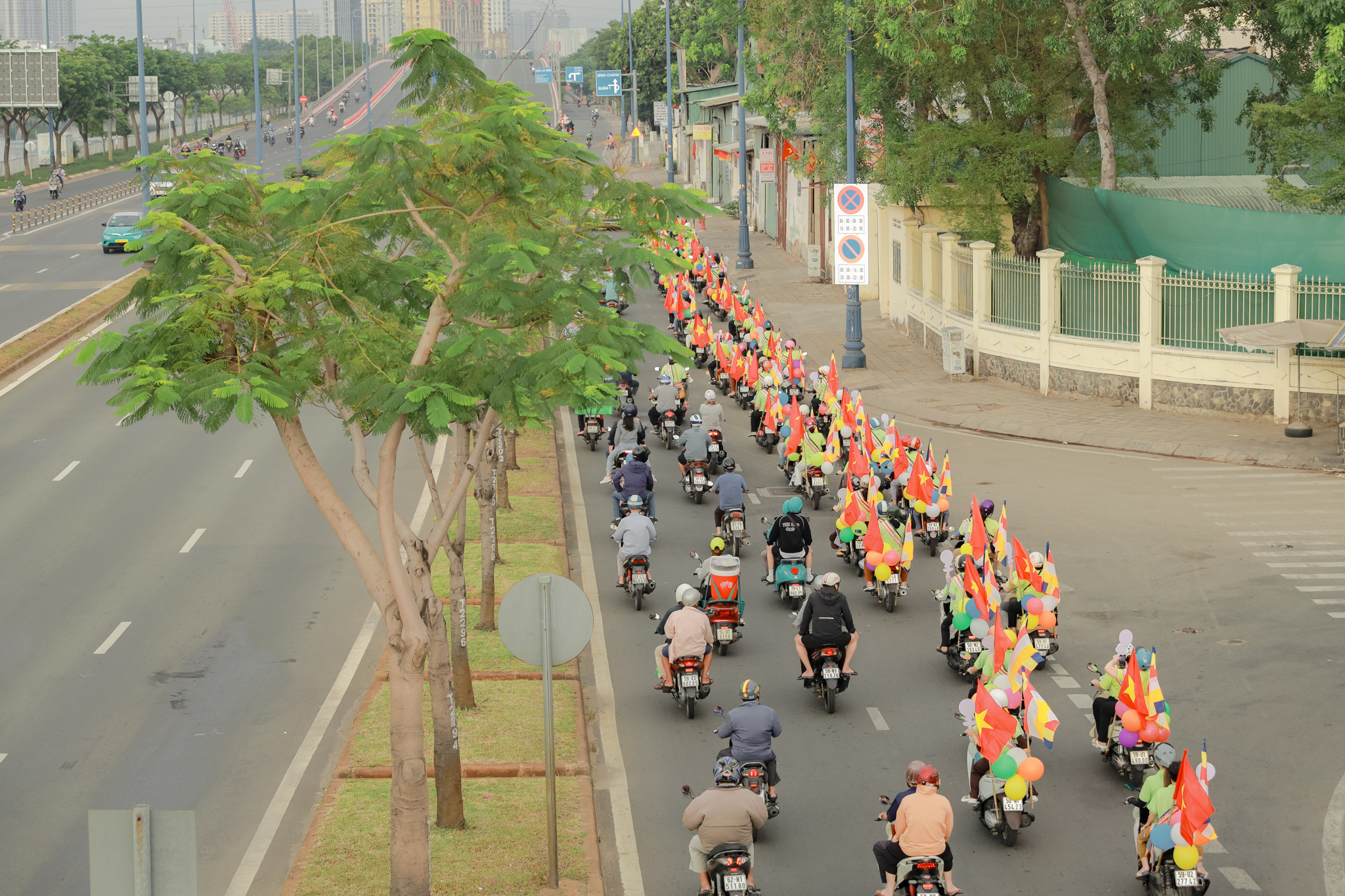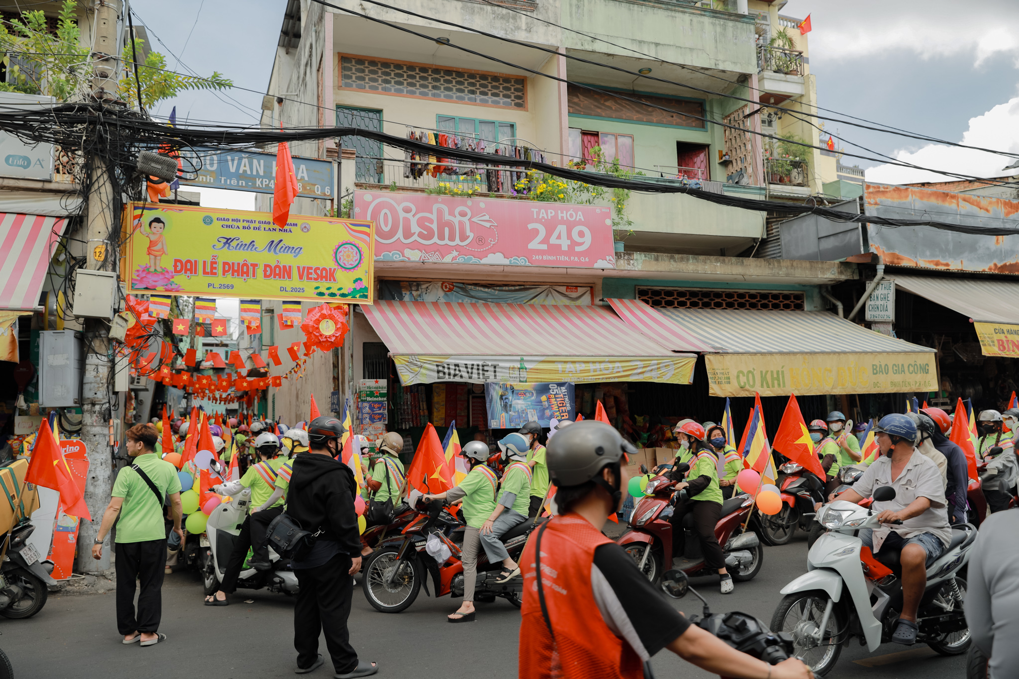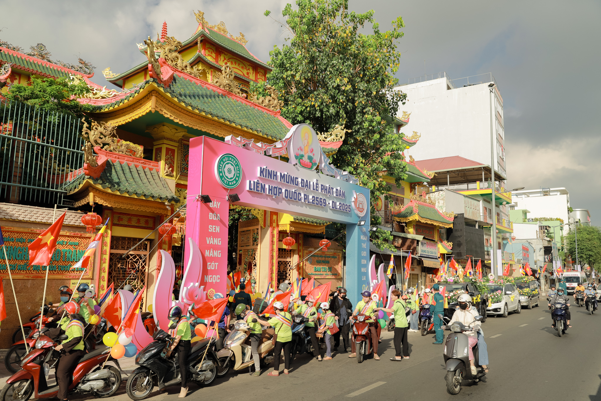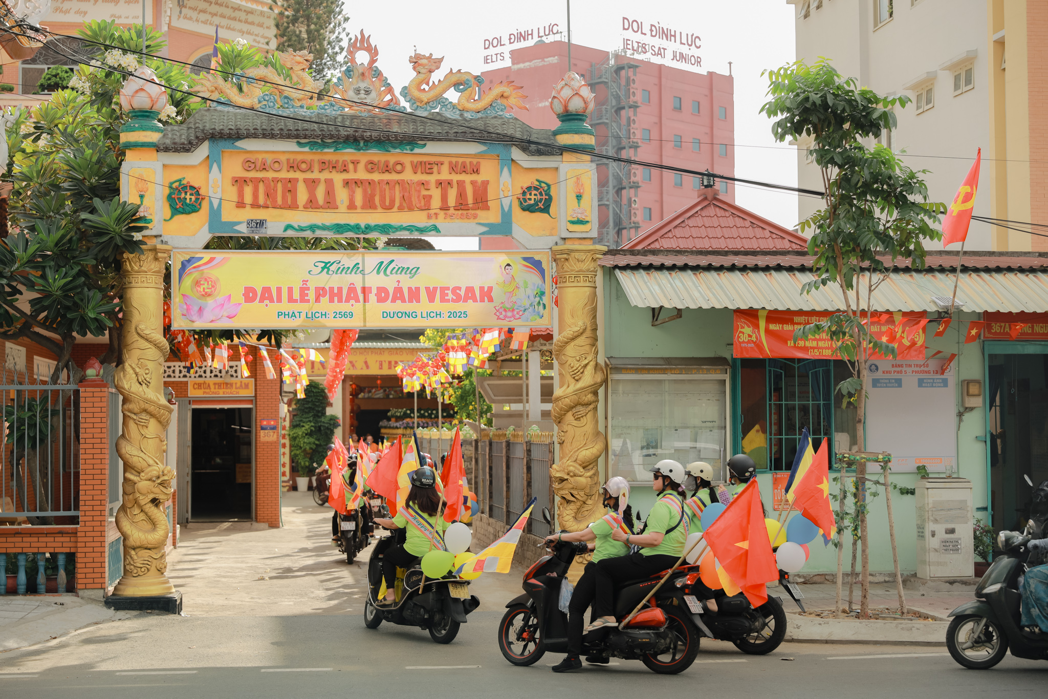 Đoàn xe hoa với biểu tượng Đức Phật sơ sinh, cờ Phật giáo và các khẩu hiệu ý nghĩa đã diễu hành qua nhiều tuyến đường chính của quận 6. Những bản nhạc mừng Khánh đản vang vọng suốt hành trình, lan tỏa tinh thần từ bi và giác ngộ.