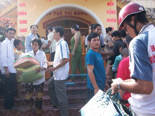 Đã có tổng có tổng cộng 300 phần quà (mỗi phần gồm 1 bao gạo 12kg, 1 thùng mì, 1 bao nhỏ gồm đường, sữa, nước tương, dầu gió,xấp vải) dành tặng cho người dân nghèo trong khu vực.