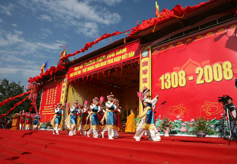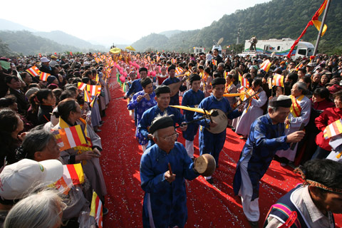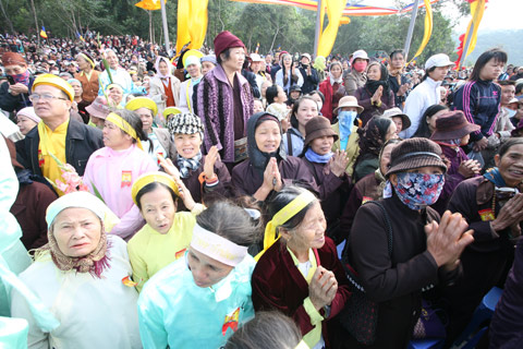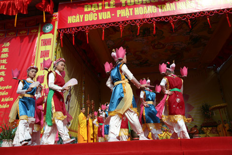 Khoảng 40.000 tăng ni, phật tử thập phương đã có mặt tại đây để bày tỏ tấm lòng thành kính, tri ân đối với Vua Đời – Vua Đạo Trần Nhân Tông. Trước khi đại lễ chính thức bắt đầu, những người dự lễ đã được thưởng thức vở chèo Trần Anh Tông kế nghiệp và bài múa Lục cúng hoa đăng rực rỡ sắc màu, điệu múa “báu vật của ca trù” được cho là hình thành dưới thời đại nhà Trần.