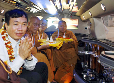 Đoàn xe đưa xá lợi về chùa Bái Đính tại Ninh Bình gồm 3 chiếc limousine Hummer và Linlcon