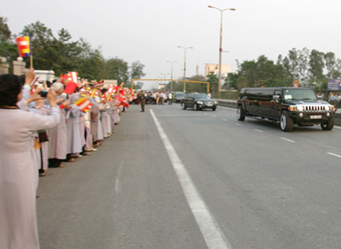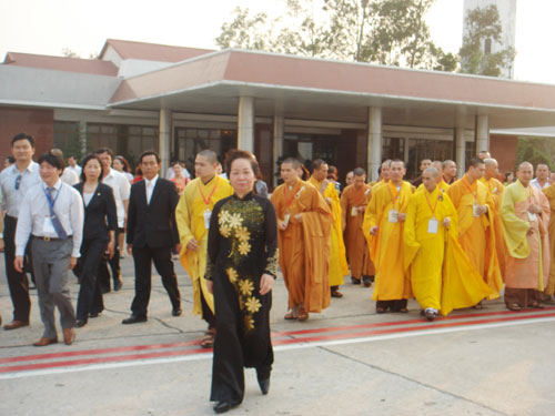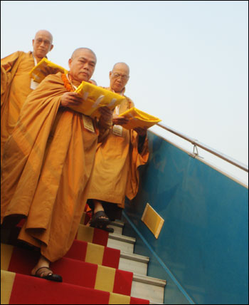 Phó Chủ tịch nước Nguyễn Thị Doan dẫn đầu đoàn tín đồ Phật giáo cung nghinh xá lợi từ chân máy bay