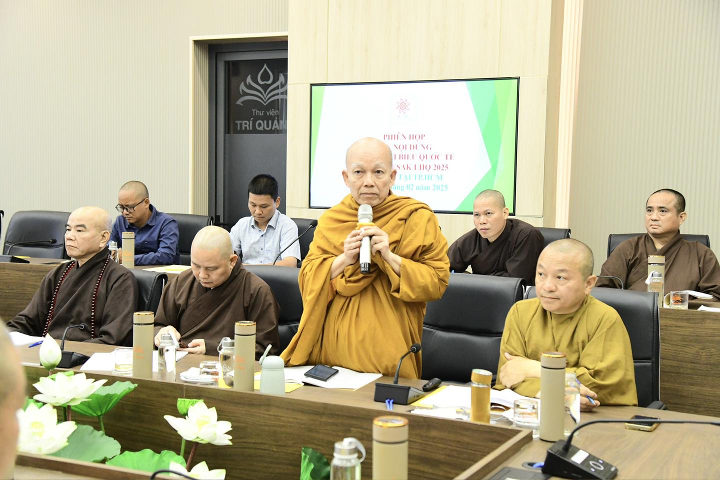 Theo đó, TT. Thích Nhật Từ, đại diện Ban Đại biểu quốc tế đã trình bày báo cáo về công tác mời khách quốc tế và các hoạt động học thuật. Thông qua các cơ quan ngoại giao, Ban Tổ chức đã gửi thư mời đến các nguyên thủ quốc gia, Tăng thống, và Tăng vương của các nước như Ấn Độ, Tích Lan, Nepal, Campuchia, Mông Cổ, và nhiều quốc gia khác. Tính đến thời điểm hiện tại, Ban Tổ chức đã nhận được hơn 700 tham luận (440 bằng tiếng Anh và 278 bằng tiếng Việt) từ các học giả, nhà nghiên cứu trong và ngoài nước.