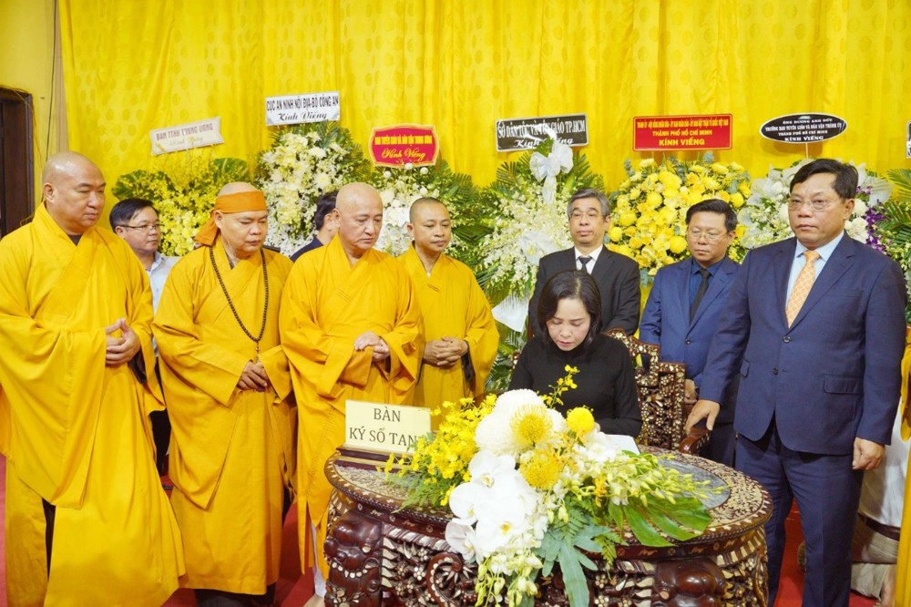 Trong niềm kính tiếc, đoàn hữu nhiễu kim quan và ghi sổ tang lưu niệm, phân ưu cùng Ban Tổ chức lễ tang, sơn môn pháp phái và môn đồ pháp quyến.