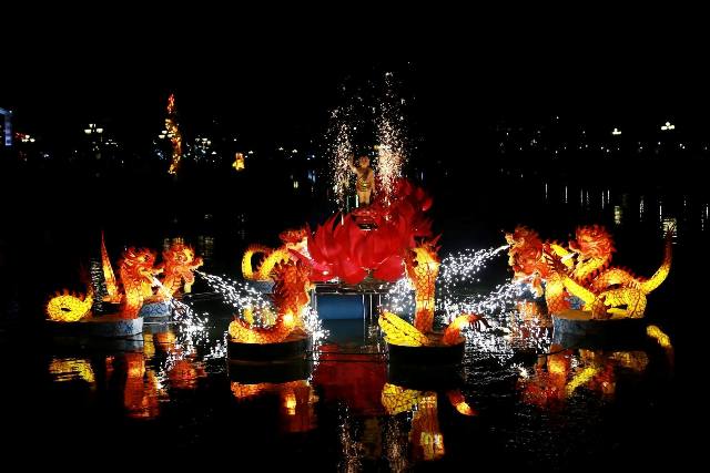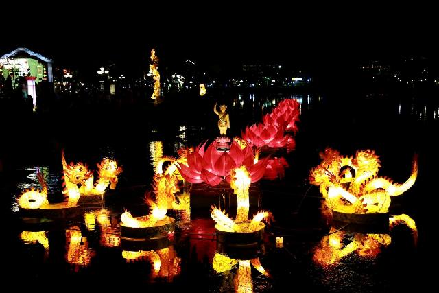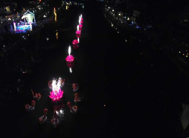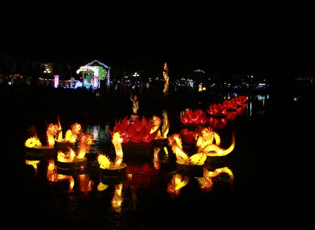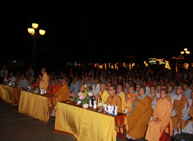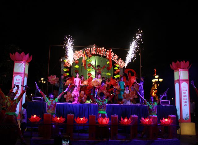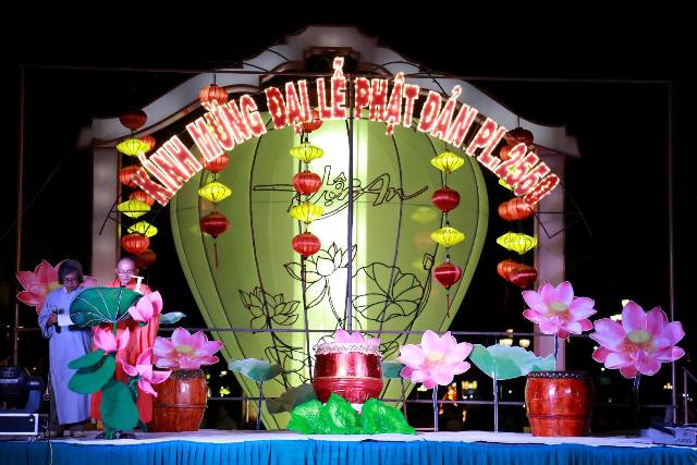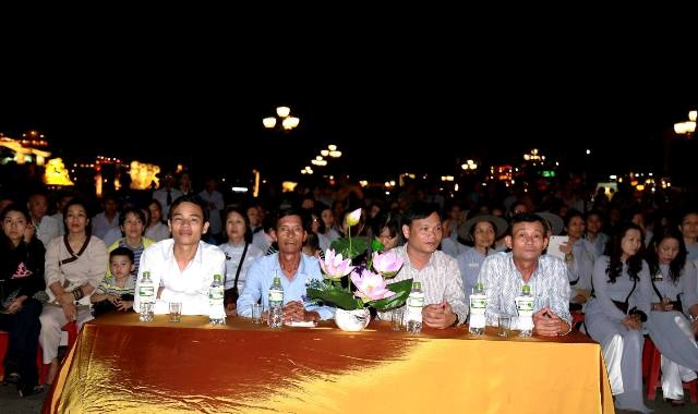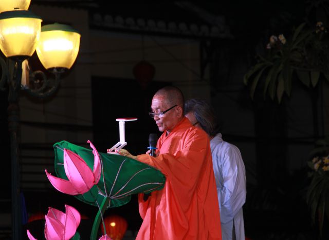 Sau lời ban đạo từ, chư tôn đức và đại diện chính quyền lần lượt thắp sáng 7 đoá sen được với 9 rồng phun nước mừng Phật đản sanh, mở đầu cho tuần lễ Phật đản tại phố cổ Hội An năm nay trong niềm hân hoan của tất cả mọi người con Phật.