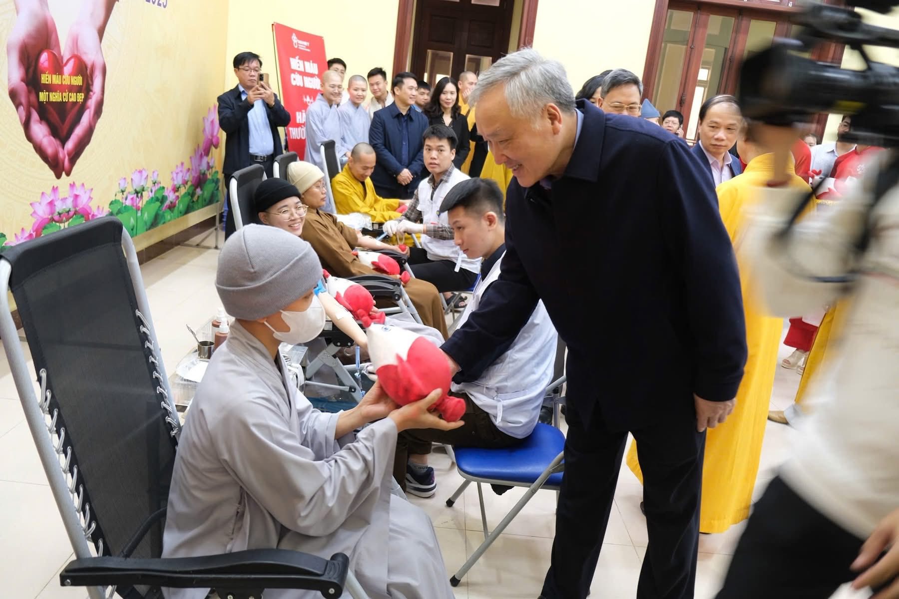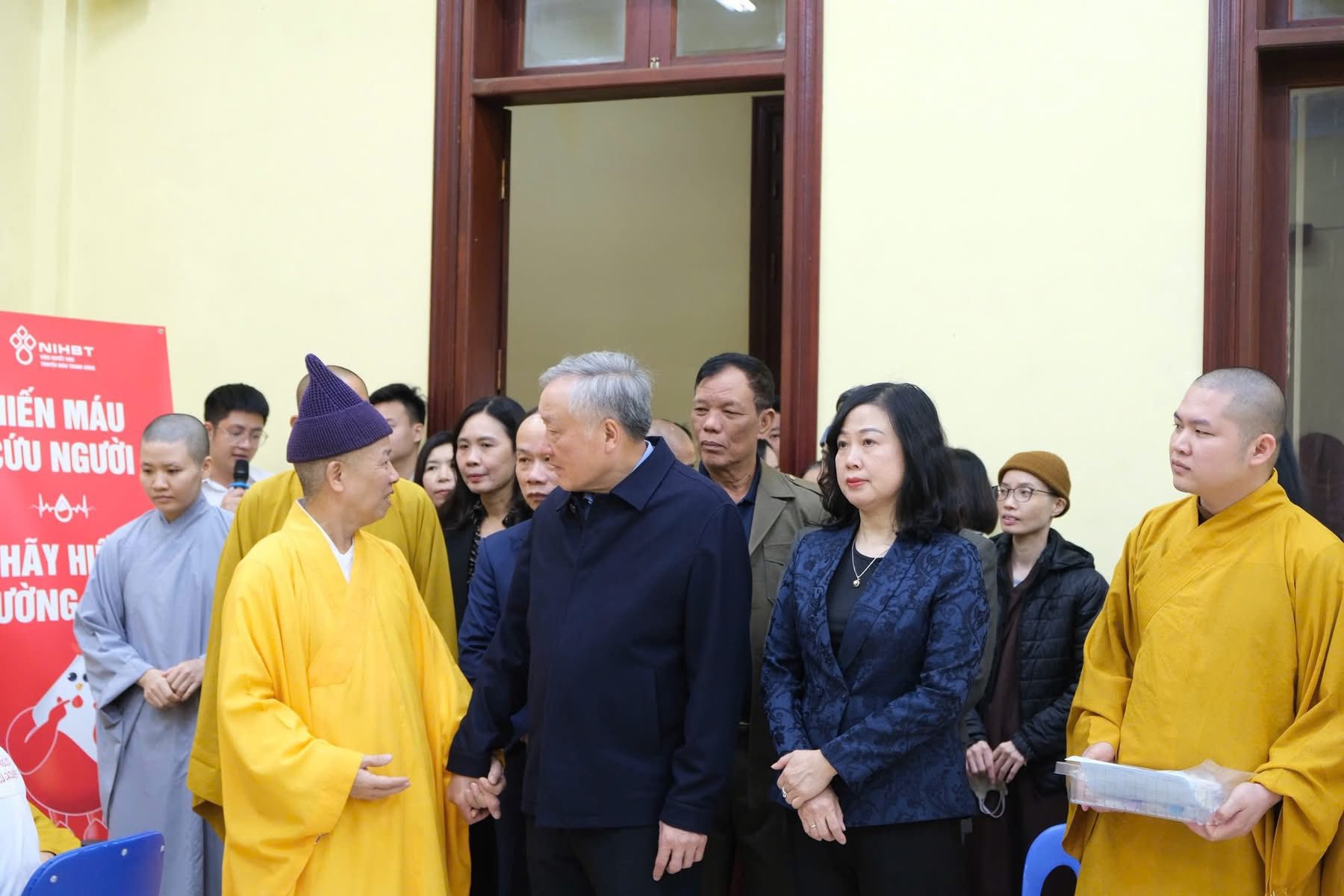 Sau đó, Phó Thủ tướng Thường trực Nguyễn Hoà Bình đã dự lễ Khai mạc ngày hội “Hiến máu cứu người – Hành Bồ-tát đạo năm 2025” của Học viện. Phó Thủ tướng Thường trực và các đại biểu ân cần hỏi thăm và động viên, khích lệ tinh thần từ bi – hỷ xả của các Tăng Ni sinh tham gia hiến máu trong buổi sáng qua.