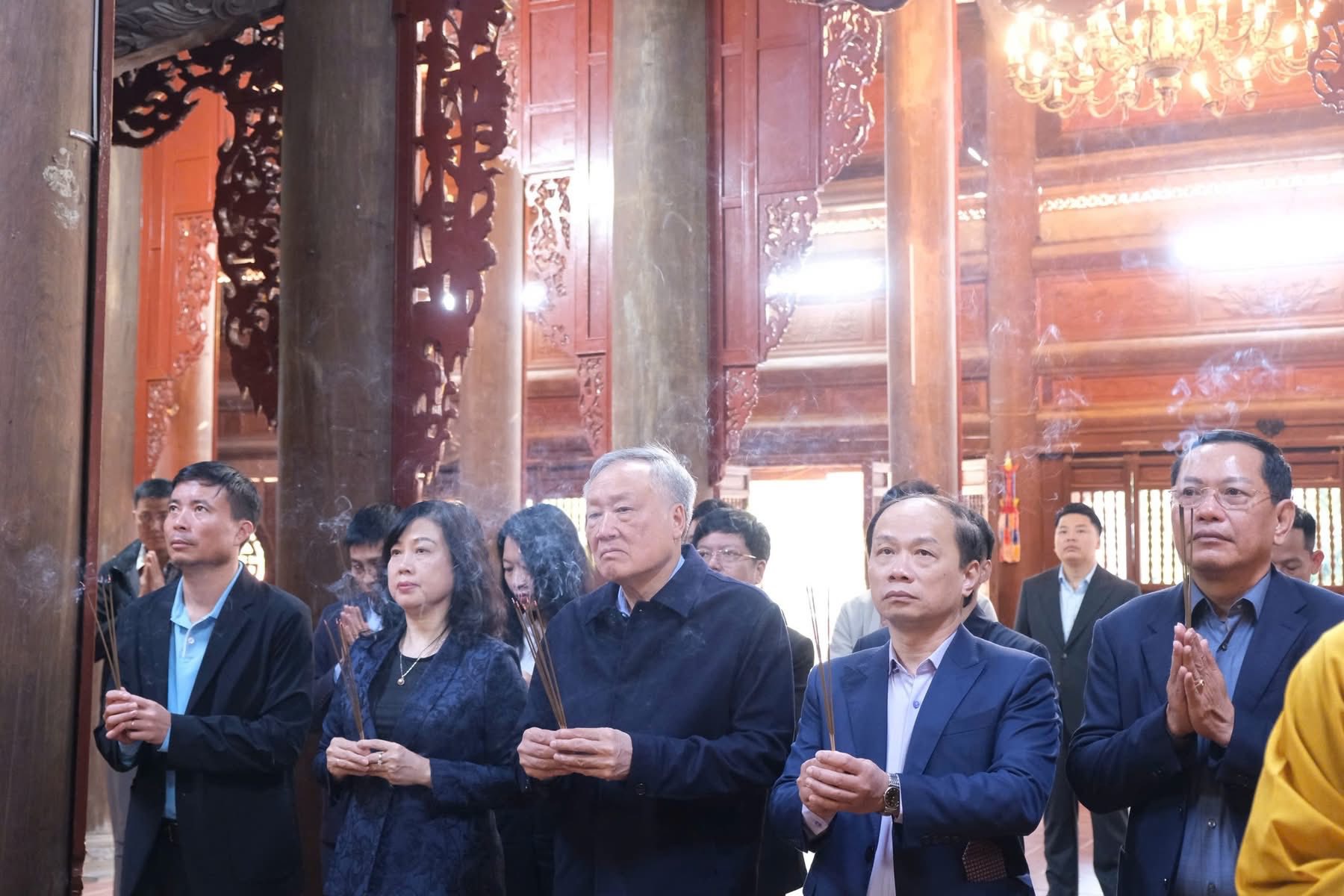 Sáng qua 23-11, nhân chuyến thăm, làm việc tại Học viện, Uỷ viên Bộ Chính trị, Phó Thủ tướng Thường trực Chính phủ Nguyễn Hoà Bình cùng các đại biểu đã đến thăm và dâng hương tại chính điện chùa Non Nước (Sóc Thiên Vương thiền tự), cầu nguyện quốc thái dân an.
