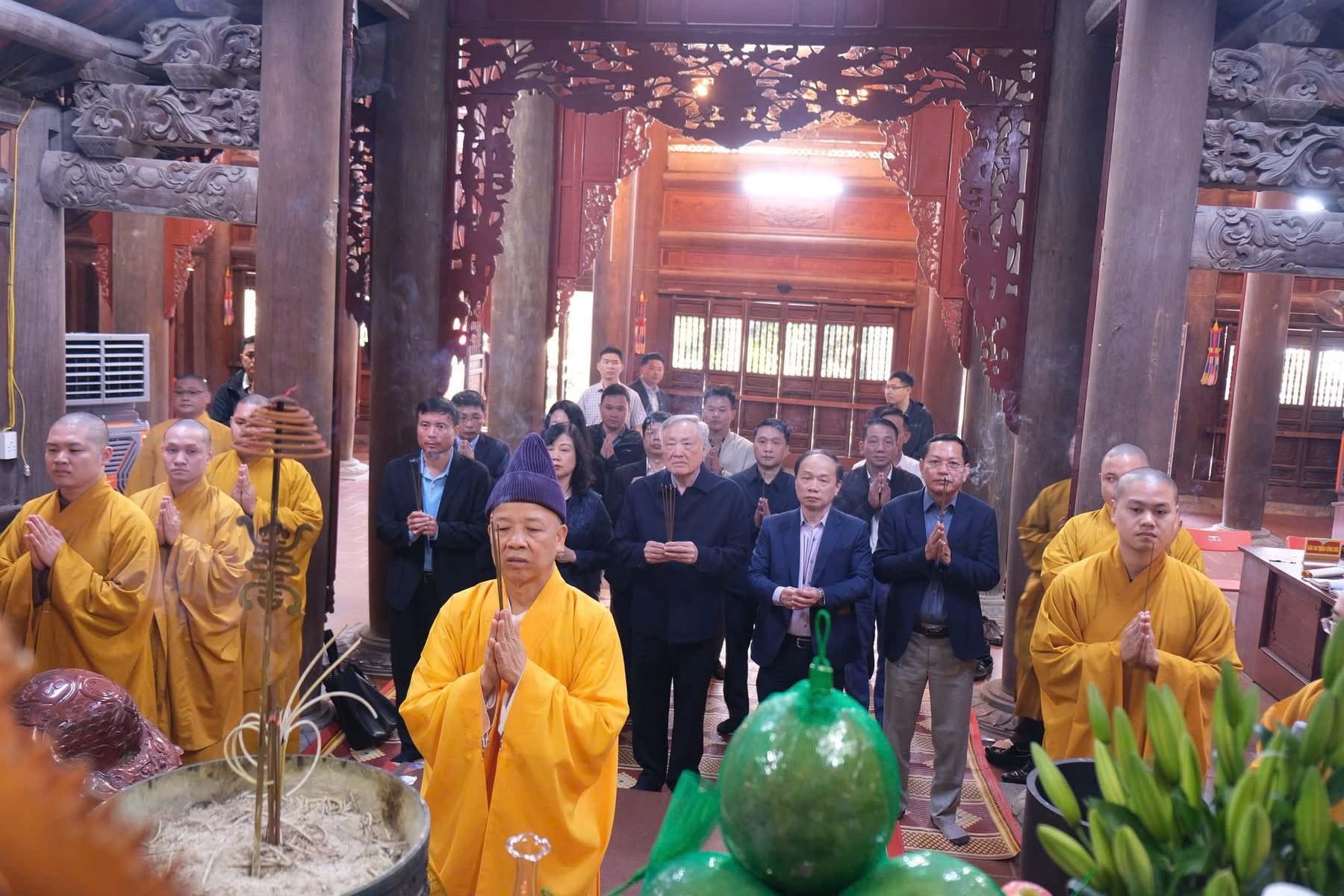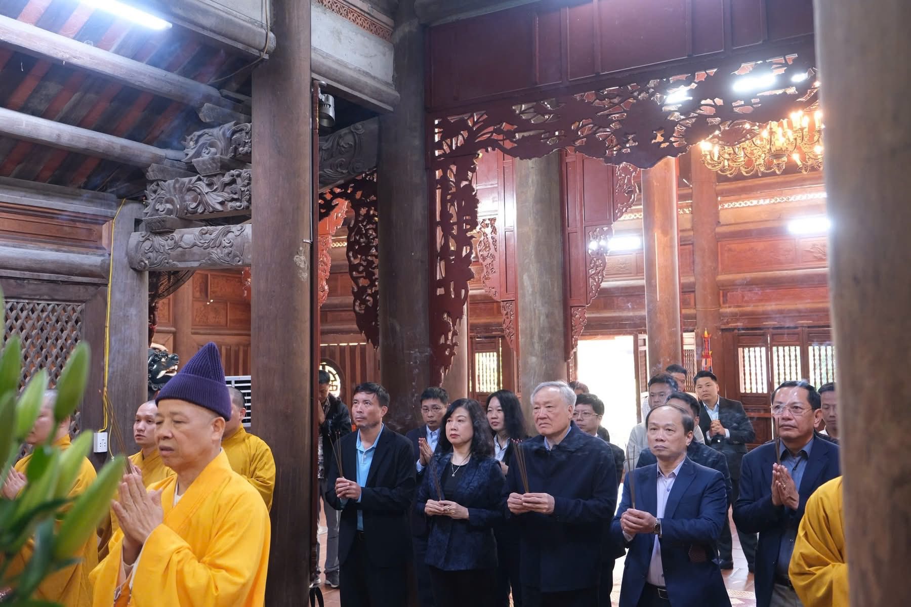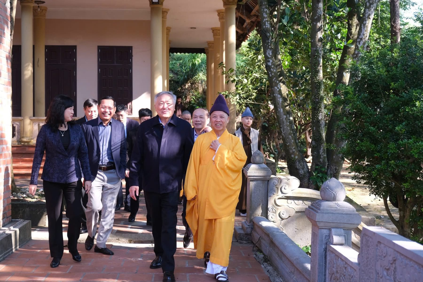 Sáng qua 23-11, nhân chuyến thăm, làm việc tại Học viện, Uỷ viên Bộ Chính trị, Phó Thủ tướng Thường trực Chính phủ Nguyễn Hoà Bình cùng các đại biểu đã đến thăm và dâng hương tại chính điện chùa Non Nước (Sóc Thiên Vương thiền tự), cầu nguyện quốc thái dân an.