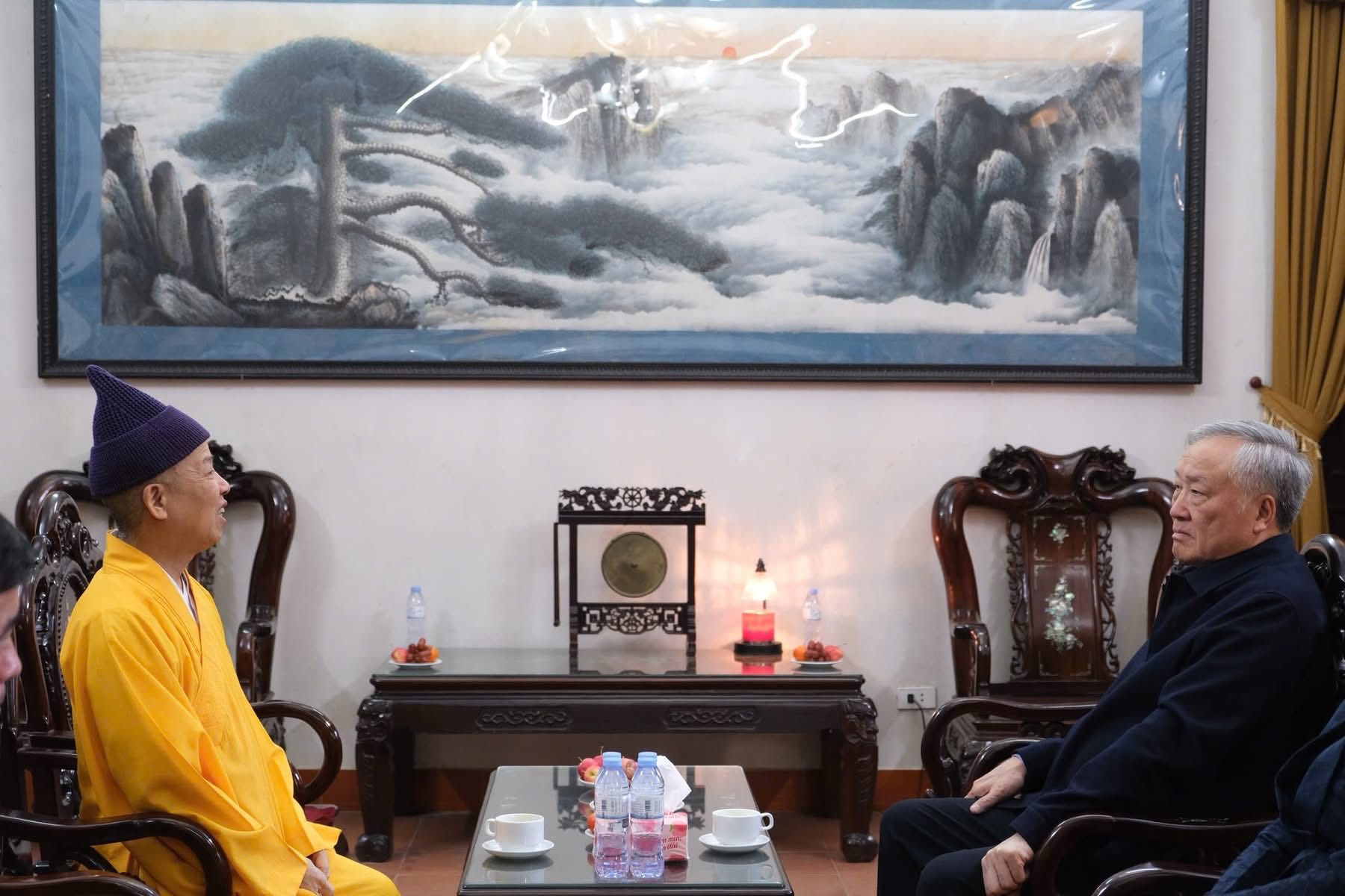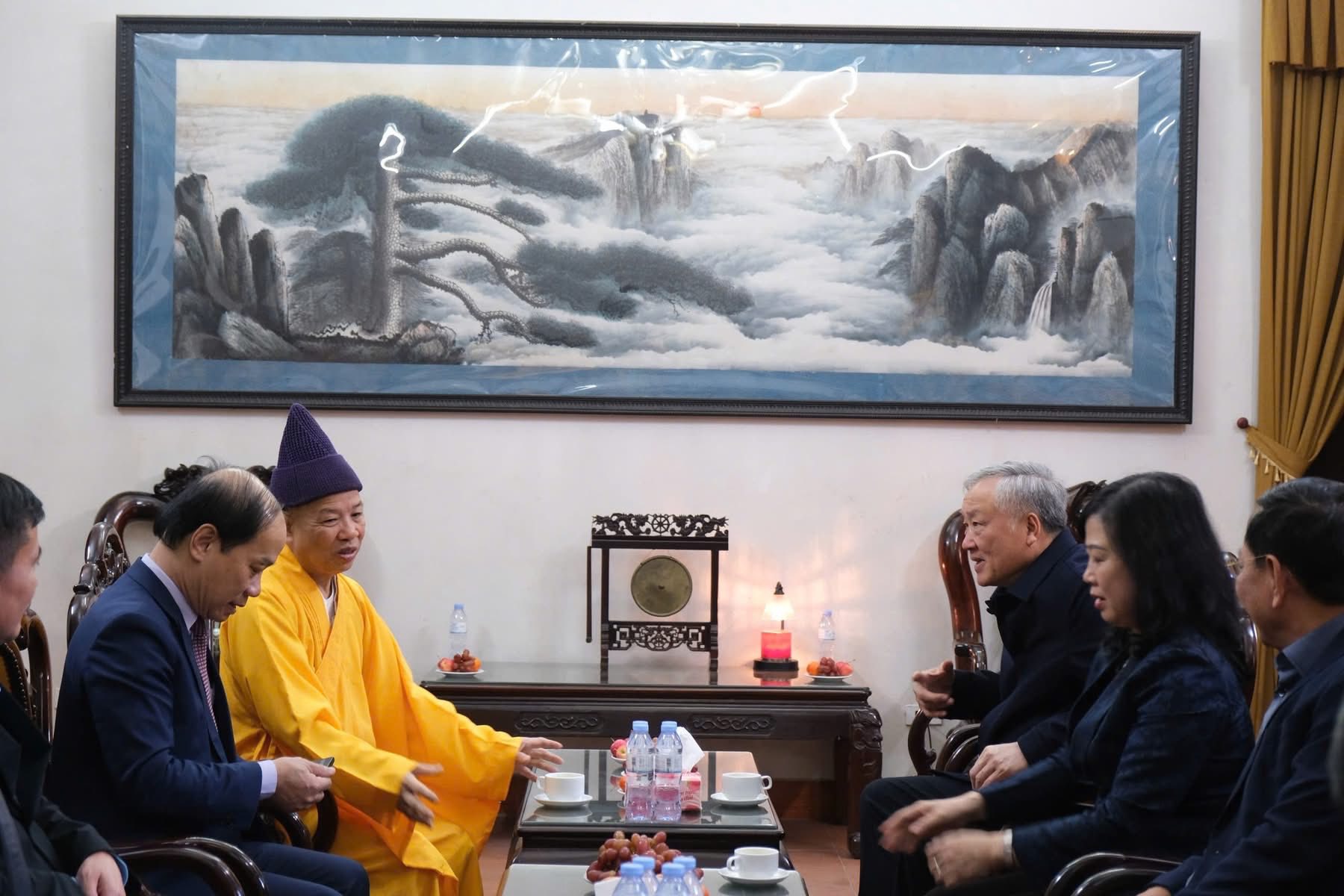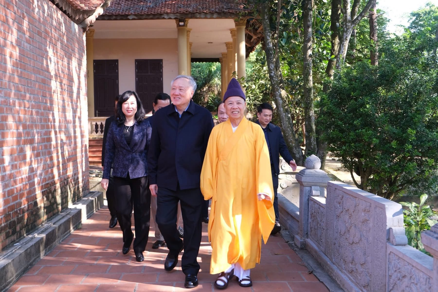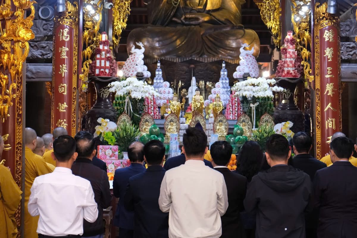 Sáng qua 23-11, nhân chuyến thăm, làm việc tại Học viện, Uỷ viên Bộ Chính trị, Phó Thủ tướng Thường trực Chính phủ Nguyễn Hoà Bình cùng các đại biểu đã đến thăm và dâng hương tại chính điện chùa Non Nước (Sóc Thiên Vương thiền tự), cầu nguyện quốc thái dân an.