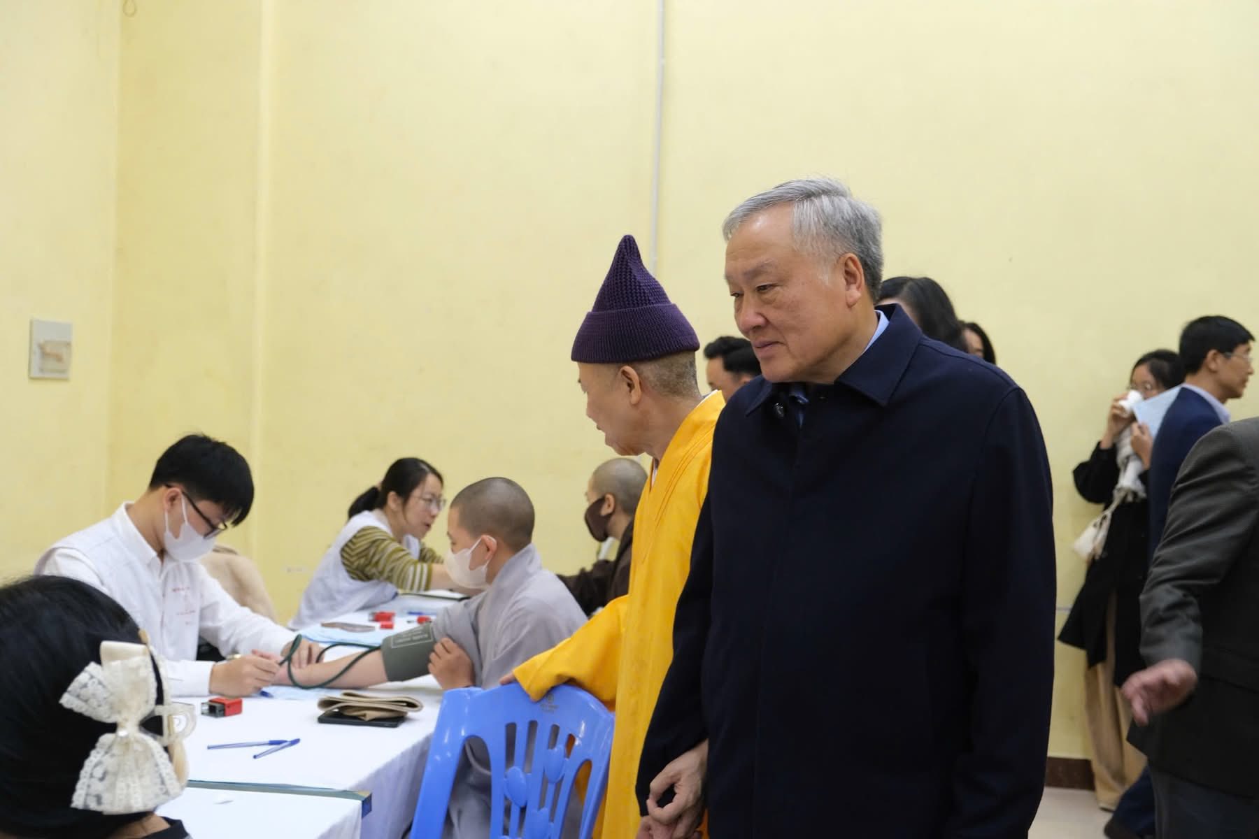 Sau đó, Phó Thủ tướng Thường trực Nguyễn Hoà Bình đã dự lễ Khai mạc ngày hội “Hiến máu cứu người – Hành Bồ-tát đạo năm 2025” của Học viện. Phó Thủ tướng Thường trực và các đại biểu ân cần hỏi thăm và động viên, khích lệ tinh thần từ bi – hỷ xả của các Tăng Ni sinh tham gia hiến máu trong buổi sáng qua.