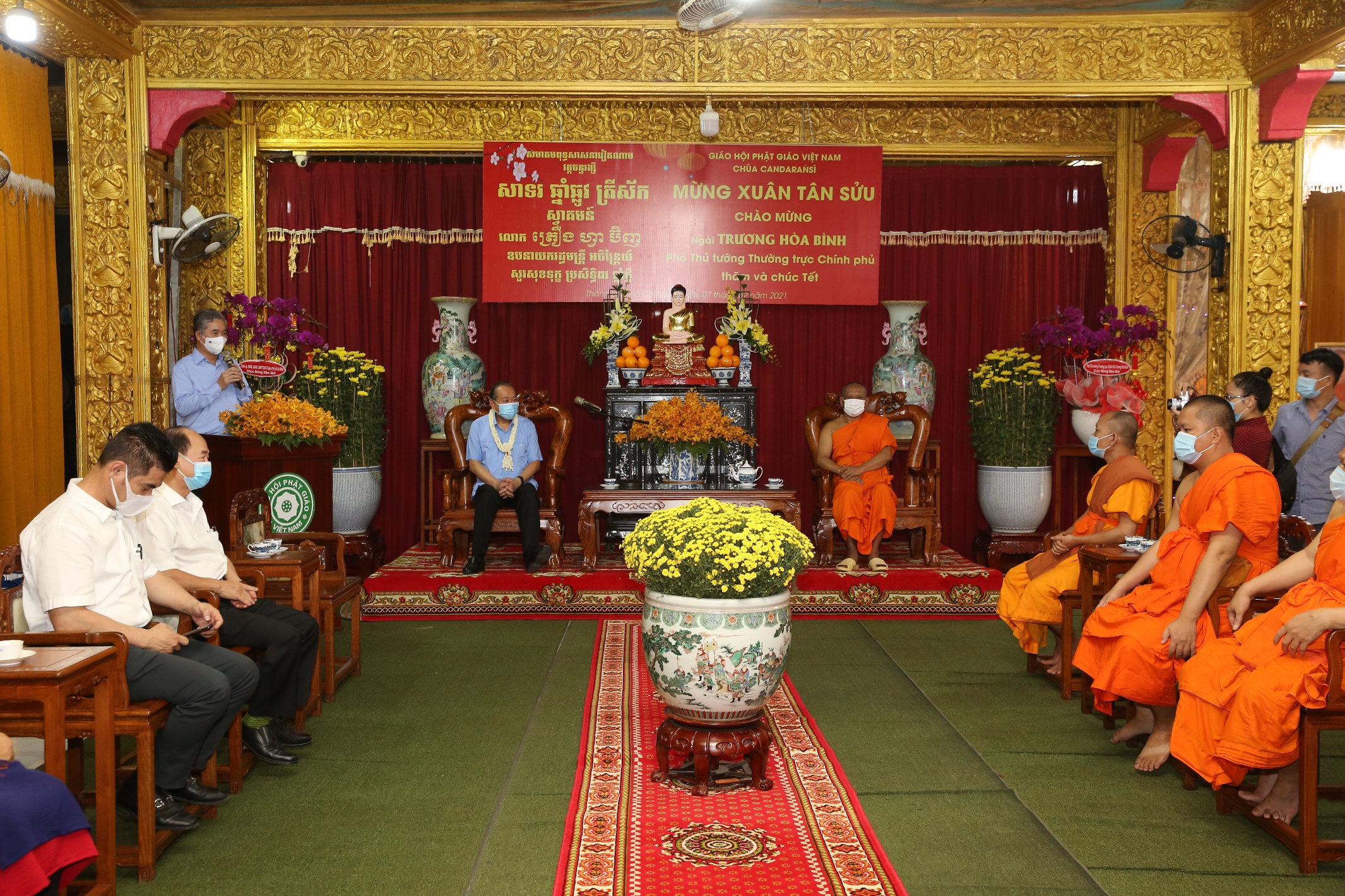 Ngày 7/2, tại chùa Candaransi (quận 3, TPHCM), Phó Thủ tướng Thường trực Chính phủ Trương Hòa Bình đã đến thăm, chúc Tết chư tăng, phật tử Nam tông Khmer và trao quà cho các sinh viên Lào, Campuchia, Việt Nam và người dân Khmer khó khăn, xa nhà nhân dịp Tết Nguyên đán Tân Sửu 2021.