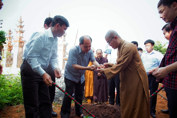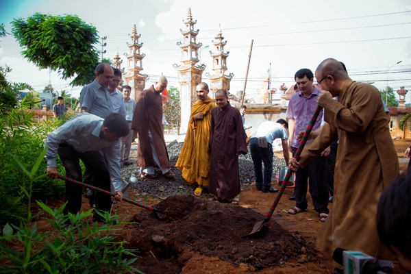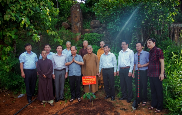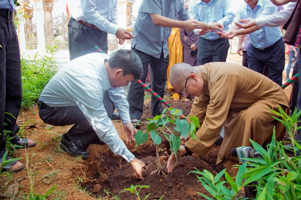 Tiếp sau đó, ông Cao Tấn Khổng, cùng các thành viên và ĐĐ. Thích Quảng Hiền thực hiện trồng 2 cây bồ đề lưu niệm tại cổng Chùa Pháp Hoa với mong ước cầu cho quốc thái dân an, địa phương phát triển.