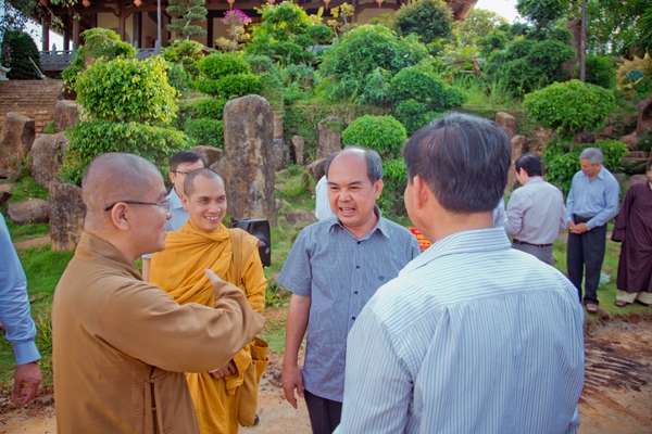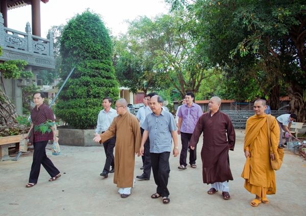Sau khi dâng hương, lễ Phật, đoàn đã có buổi trao đổi thân mật với ĐĐ Thích Quảng Hiền. Qua đó, ông Cao Tấn Khổng đã bày tỏ sự cảm ơn sâu sắc đến Đại đức đã dành cho việc đón tiếp đoàn hết sức chu đáo. Ông cũng đánh giá cao những đóng góp to lớn của Phật giáo tỉnh nhà bên cạnh các thành tựu của tỉnh nói riêng và Nhà nước nói chung.