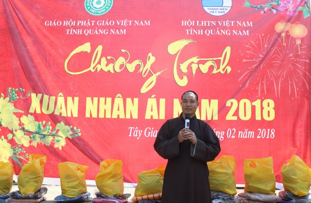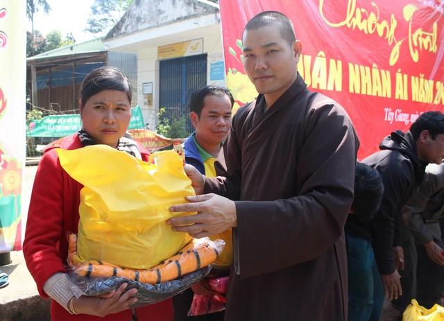 Tại buổi tặng quà, ĐĐ.Thích Viên Quán đã có lời thăm hỏi và động viên đến bà con tại địa phương, chúc năm mới được đầy đủ sức khỏe, đón thêm một mùa xuân mới an lạc.
