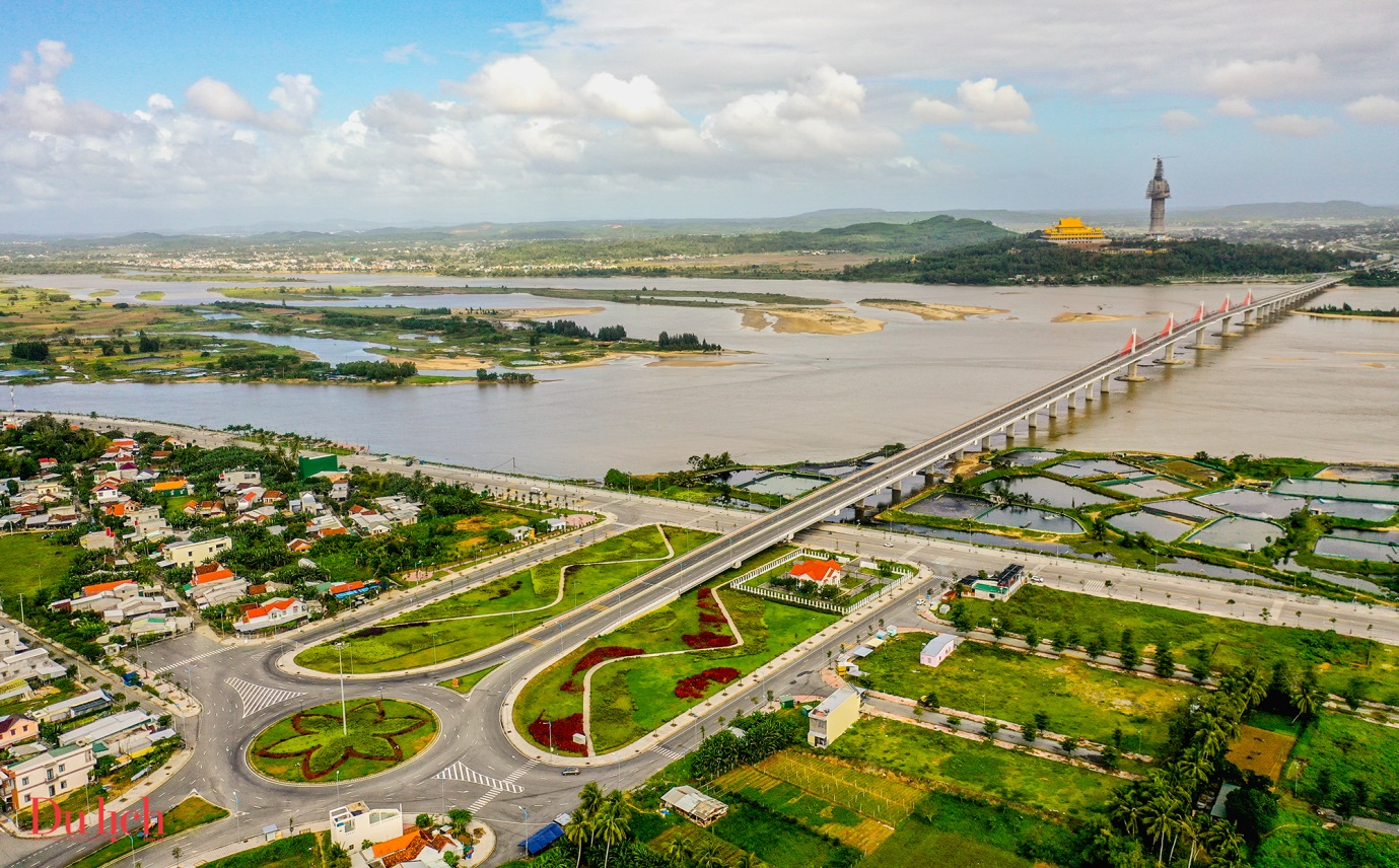 Nổi bật khu văn hóa tâm linh Phật giáo này là tượng Bồ tát Quán Thế Âm cao 122 m (tượng Phật cao nhất Việt Nam). Từ chùa Minh Đức, du khách có thể phóng tầm mắt chiêm ngưỡng dòng sông Trà Khúc giao hòa với biển ở Cửa Đại và tàu thuyền đi lại tạo nên bức tranh sông nước thơ mộng bên cầu Cổ Lũy.