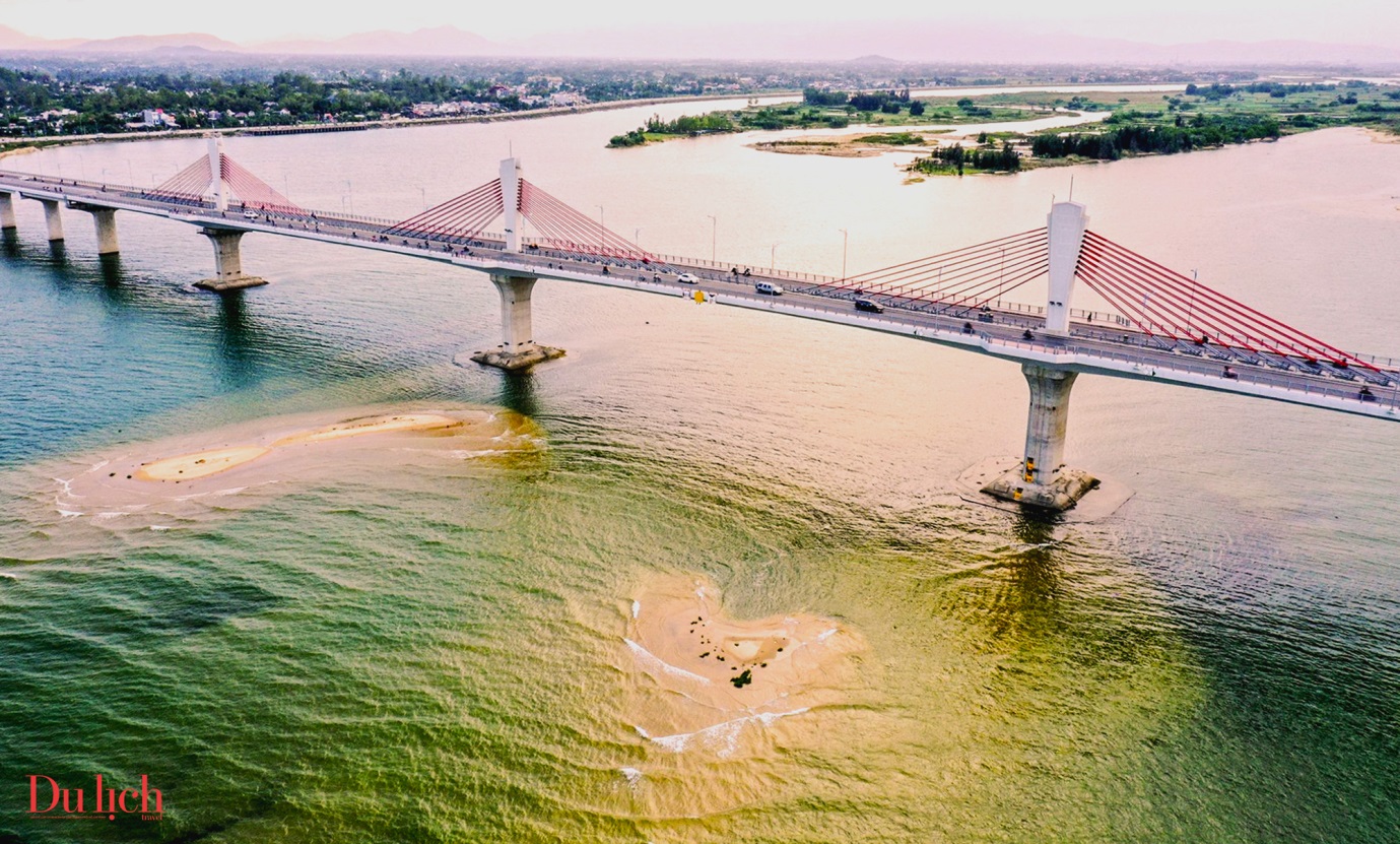Mỗi khi thủy triều rút xuống, khu vực gần sát chân cầu Cổ Lũy bắc ngang sông Trà Khúc (TP Quảng Ngãi) nổi lên một số cồn cát, trong đó có một cồn cát giống hệt hình trái tim.
