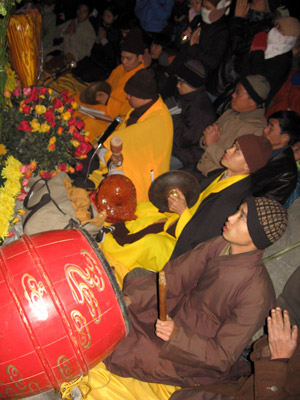 Trời càng về khuya càng rét, gió mùa đông bắc cấp 4-5 khiến không ít Phật tử phải mặc áo mưa chống rét, nhiều người phải ngồi ngoài trời suốt đêm. Một số người đã thức trắng đêm. Các cụ nhiều tuổi leo lên đỉnh Yên Tử đã mệt, thức đêm giữa giá lạnh còn cực khổ hơn. Nhưng chắc hẳn không ai thấy cực, vì họ rất hoan hỉ đón chờ ngày mai