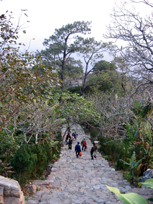 Leo lên độ cao hơn 1000 m, nhưng thực chất phải vượt qua quãng đường dài hơn thế là thử thách đối với nhiều người. Nhưng về đất Phật nào có hề gì!