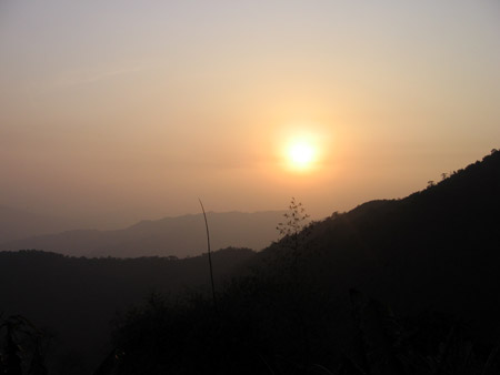 Trên đỉnh núi cao/Cách trời ba thước. Trên đường hành hương, khung cảnh hoàng hôn không khỏi làm lữ khách bâng khuâng
