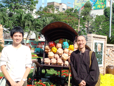 Nikko (trái) – người Nhật có mặt tại TP.HCM đón tết nguyên đán Việt Nam