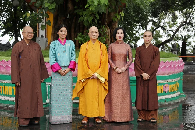 Cảm kích trước sự đón tiếp của phu nhân Chủ tịch nước và trụ trì chùa Trấn Quốc, hoàng hậu Bhutan chia sẻ Bhutan và Việt Nam tuy cách xa nhau về địa lý, có sự khác biệt về văn hóa nhưng hai nước đều có chung niềm tin vào giá trị Phật giáo với mong ước hòa bình, trí tuệ và bao dung, từ bi.