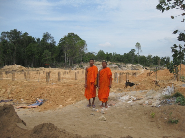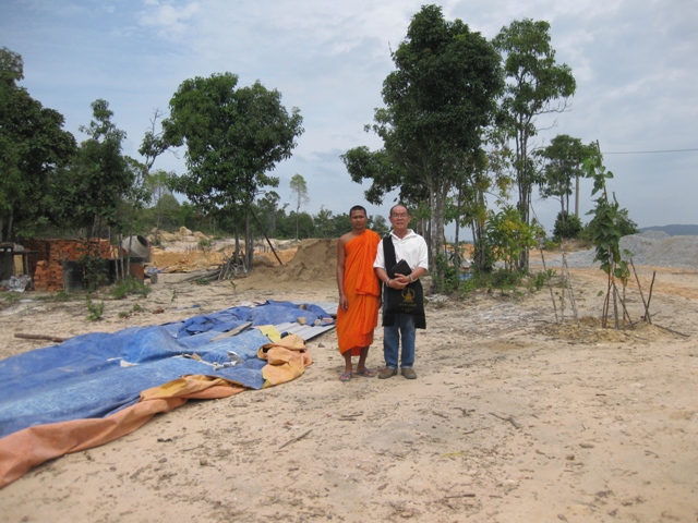 Chùa nằm trên triền núi, một khu rừng đồi vừa được phát quang khoảng hơn 1 héc-ta và các công nhân thuộc công ty xây dựng Anh Hào của Tỉnh Trà Vinh mà đại diện là Ông Tăng Văn Chấn (Anh Hào), Giám Đốc đang trực tiếp thi công xong phần đổ móng nền chùa. Nơi chánh điện tạm thờ Phật là hai nhà mái tôn đơn sơ che chắn bằng những tâm tôn vang rền tiếng kêu khi từng cơn gió biển thổi tạt về. Giai đoạn khai sơn này đươc xem như “ Lủa thử vàng, gian nan thử sức “. Khó khăn và thiếu thốn đủ bề từ cơ sở vật chất, điều kiện sống lẫn những khó khăn về tài chánh tất cả đổ dồn lên vai HT.Trần Phương nhưng sao chúng tôi vẫn thấy trên khuôn mặt của các Sư Sadi Châu Sang và Dương Trắng không có một biểu hiện lo âu nào lẫn cả anh Chấn miệng vẫn nở nụ cười thật tươi chào đón khách viếng thăm chùa và trong mắt của họ vẫn ngời một niềm tin mạnh mẽ vào sự hộ trì của Chư Thiên và Phật Pháp.