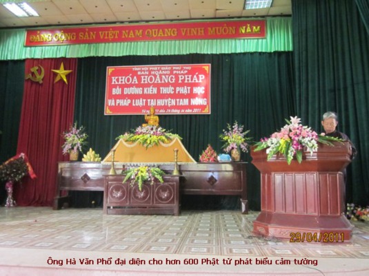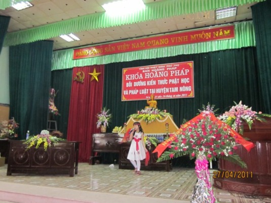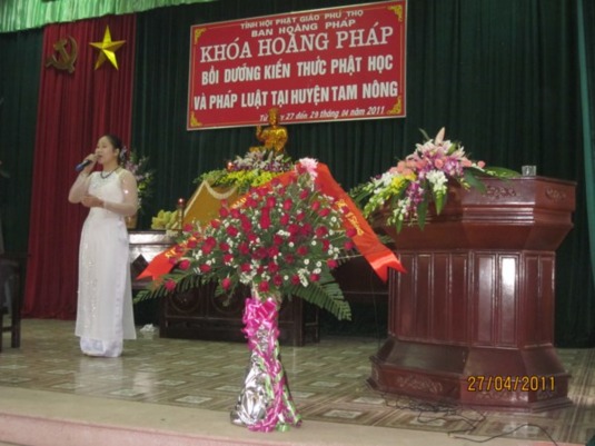 Khóa học diễn ra trong 03 ngày, từ ngày 27-29/4/2011, hơn 600 Phật tử tiêu biểu được tuyển chọn tại các xã đã về tham dự khóa học các Phật tử đã được bồi dưỡng 09 chuyên đề sau: Luận về Tam Bảo, Luận về Tam quy Ngũ giới, Luận về luật Nhân quả, Luận về Luân hồi – Nghiệp báo, Luận về Tứ Diệu Đế, Ý nghĩa của việc thờ Phật – lạy Phật – cúng Phật, Bổn phận của Phật tử tại gia, Lược giảng Yếu chỉ của Pháp môn Tịnh độ, trích giảng chủ trương chính sách của Đảng – nhà Nước về các hoạt động tôn giáo.