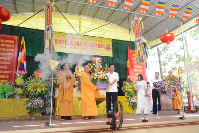 Nhân mùa Phật đản, ban tổ chức còn trao các phần quà từ thiện cho các hộ gia đình có hoàn cảnh khó khăn trong địa bàn huyện. BTC cũng đã đón nhận sự ưu ái của BTS tỉnh, quý đại biểu khách quý, các đạo tràng Phật tử thông qua những lẵng hoa chúc mừng đại lễ . Cuối cùng là nghi thức Phật đản và nghi lễ tắm Phật , trong không khí đại hoan hỷ cùng hướng về đạo Từ bi, Giải thoát, Giác ngộ.