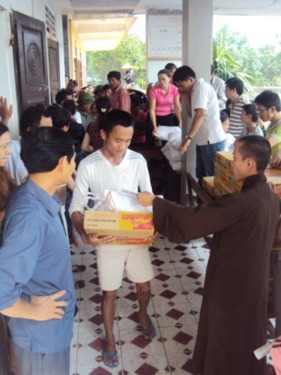 Tuy thế, nhưng cả đoàn lúc nào cũng vui cười và hớn hở. Vì mỗi người đã thực hành được tinh thần Từ Bi Cứu Khổ mà Đức Phật đã dạy, cũng như đã thực hiện được lời dạy của người xưa " Một Miếng Khi Đói bằng Một Gói Khi No", "Lá Lành Đùm Lá Rách".