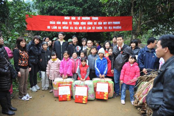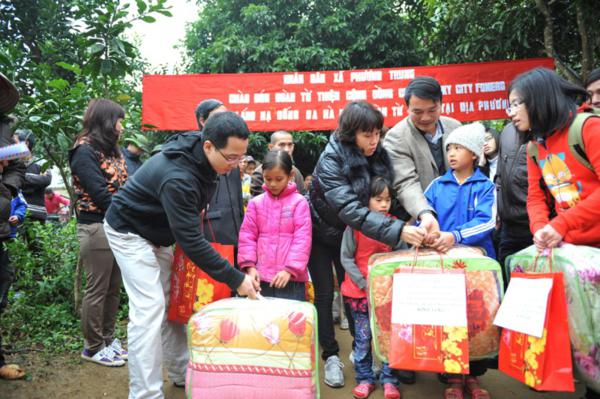 Tại xã Phương Trung, đoàn đã ủng hộ 25 phần quà cho các hộ nghèo, 5 phần quà, áo ấm chăn bông cho các em học sinh nghèo hiếu học và hỗ trợ Trưởng Mầm Non 20 triệu dùng để mua dụng cụ đồ chơi cho các em.