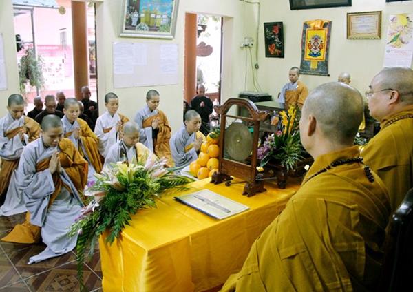 1. Ngôi Hòa Thượng Đường Đầu cung thỉnh Ni trưởng Thích Đàm Kim, Cố vấn Ban Đặc trách Ni giới TW GHPGVN.