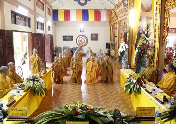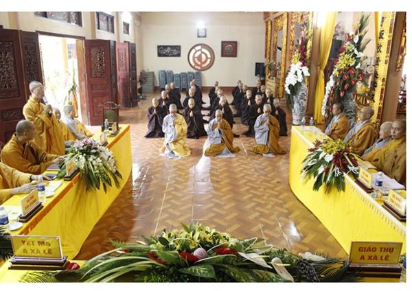 Căn cứ theo Giới đàn các nghi lễ được cử hành theo giới luật. Chư tôn đức hội đồng Giới sư quang lâm giới đàn, niêm hương bạch Phật cầu gia bị.