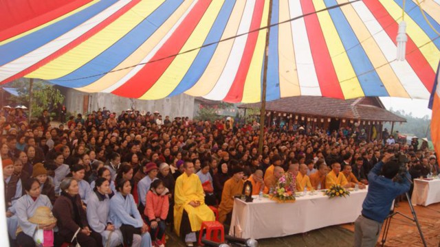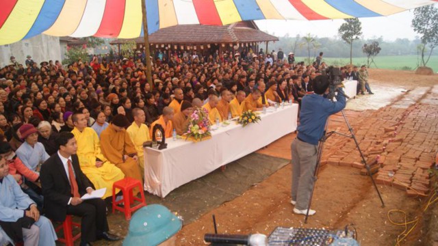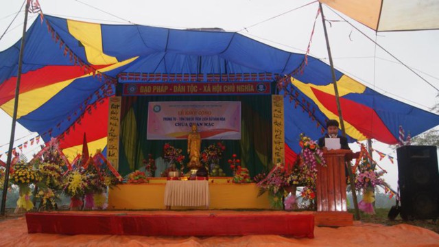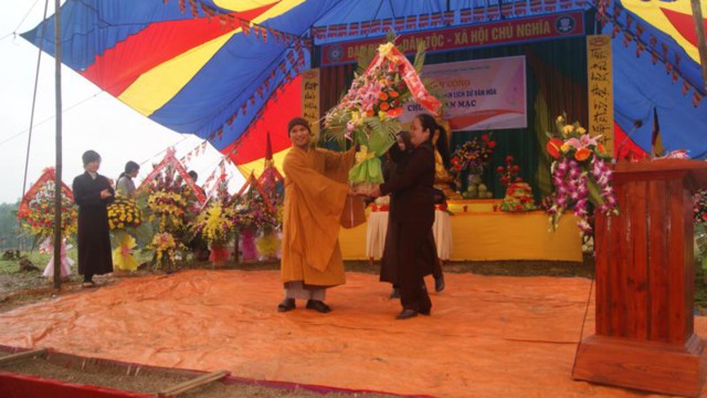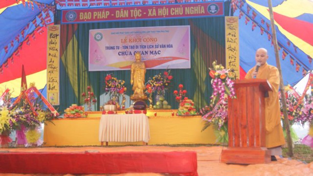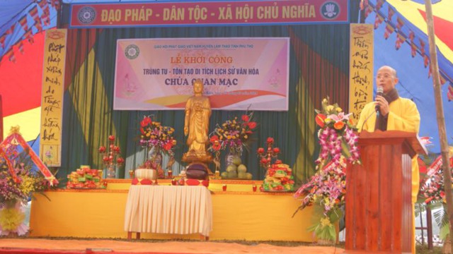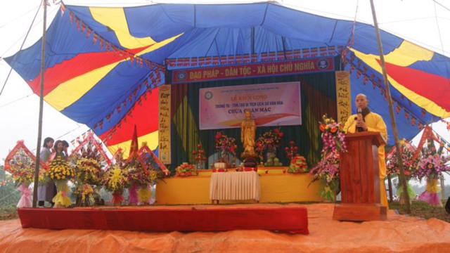 Sau nghi thức niệm Phật cầu gia hộ, Đại Đức Thích Huệ Phú – kiêm Trụ Trì chùa lên tuyên đọc diễn văn khai mạc và Ông Nguyễn Quốc Huy chủ tịch UBND xã Tiên Kiên đã lên công bố các văn bản liên quan, dự trù kinh phí xây dựng tổng thể hơn 5 tỷ đồng. Tiếp đó là phát biểu của đại diện chính quyền xã Tiên Kiên huyện Lâm Thao. Nhân đây, Đại đức Thích Minh Nghiêm, Ủy viên HĐTS TW GHPGVN, trưởng Ban Trị Sự GHPGVN tỉnh Phú Thọ đã ban đạo từ tán thán công đức của Đại đức kiêm trụ trì và kêu gọi bà con Phật tử, các mệnh thường quân đóng góp tịnh tài, tịnh vật để nhà chùa có kinh phí xây dựng và sớm đưa công trình xây dựng vào phục vụ cho sinh hoạt tâm linh của bà con Phật tử.