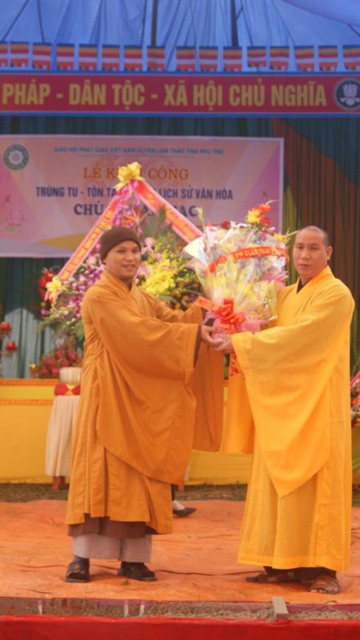 Quang lâm và chứng minh buổi lễ có sự hiện diện của Đại đức Thích Minh Nghiêm, Ủy viên HĐTS TW GHPGVN, trưởng Ban Trị Sự GHPGVN tỉnh Phú Thọ, cùng đông đảo Chư tôn Thiền đức Tăng Ni và bà con Phật tử địa phương và các vùng lân cận.