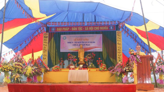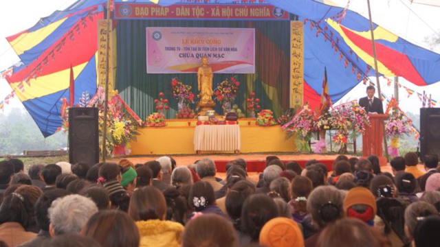 Trước khi kết thúc buổi lễ, Chư tôn đức Tăng cùng lãnh đạo địa phương đã xúc những xẻng cát đâu tiên tại lễ động thổ xây dựng Chùa Quan Mạc. Buổi lễ đã được thành tựu viên mãn trong niềm hoan hỷ của Chư tôn thiền đức Tăng Ni, các cấp chính quyền và bà con Phật tử.