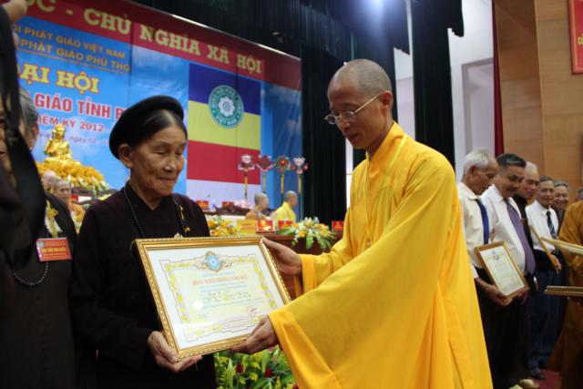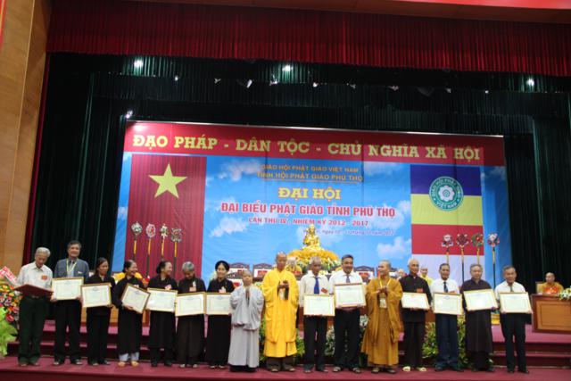 Tại buổi lễ thay mặt BTS, Đại đức Thích Minh Nghiêm, Trưởng ban Trị sự Phật giáo tỉnh Phú Thọ đã tặng bằng tuyên dương công đức cho cá nhân và tập thể đã có những đóng gọp trong công tác Phật sự của tỉnh.