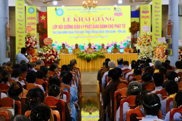 Đạo từ tại buổi lễ, Thượng tọa Thích Minh Nghiêm đã tán thán chư Tôn đức của Ban Hoằng pháp khi đáp ứng nhu cầu học pháp và hành pháp của Phật tử địa phương qua việc mở Lớp Giáo lý Phật tử tại phường Vĩnh Yên và xã Yên Lạc. Thượng tọa cũng nhấn mạnh vai trò quan trọng của việc học giáo lý trong quá trình hành trì, giúp người Phật tử nuôi dưỡng chính kiến, vững niềm tin Tam bảo.