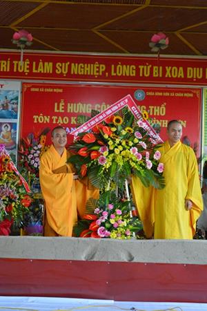 Đến chứng minh buổi lễ về phía chư tôn đức Tăng có: TT. Thích Minh Nghiêm – Ủy viên HĐTS TW GHPGVN, trưởng BTS GHPGVN tỉnh Phú Thọ, đại biểu HĐND tỉnh Phú Thọ, trụ trì chùa Đại Bi – TP. Việt Trì; ĐĐ.Thích Minh Thuận – Ủy viên dự khuyến HĐTS TW GHPGVN, Phó trưởng ban thường trực BTS GHPGVN Tỉnh Phú Thọ, Trụ trì chùa Bảo Ngạn – TP Việt Trì; ĐĐ.Thích Tánh Đăng – ủy viên BTS GHPGVN tỉnh Phú Thọ, trưởng BTS GHPGVN Huyện Đoan Hùng, trụ trì chùa Phổ Độ xã Chí Đám; ĐĐ.Thích Minh Tồn – phó ban Phật giáo Quốc tế BTS GHPGVN tỉnh Phú Thọ, Trụ trì chùa Tây Long, xã Tây Cốc, huyện Đoan Hùng; ĐĐ.Thích Quảng Thành – Trụ trì chùa Bình Sơn, xã Chân Mộng, huyện Đoan Hùng, Trưởng Ban Tổ chức Đại Lễ; cùng chư tôn đức Tăng, Ni đồng hữu Trụ trì các Chùa trong và ngoài Tỉnh Phú Thọ.