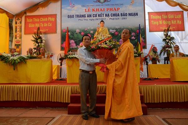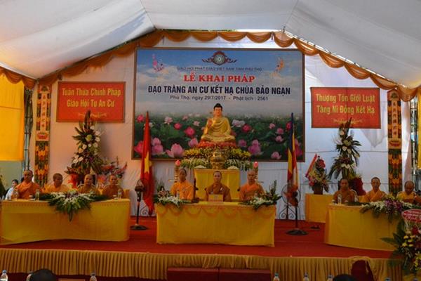 Hòa Thượng Đường Chủ thượng Thanh hạ Nhiễu (Phó chủ tịch thường trực HĐTS TW GHPGVN ) đã chỉ dạy lễ khai pháp khóa an cư kiết hạ dưới sự chứng minh điều hành của TT. Thích Minh Nghiêm – Uỷ viên HĐTS TW GHPGVN, Trưởng BTS GHPGVN tỉnh Phú Thọ, Trưởng BTC khóa an cư kiêm Chánh duy na Hạ Trường; ĐĐ. Thích Minh Thuận – Ủy viên dự khuyết HĐTS TW GHPGVN, Phó thường trực BTS GHPGVN tỉnh Phú Thọ – Phó Duy Na kiêm Phó BTC Hạ trường; ĐĐ. Thích Minh Đức – Hàng Kỳ túc Tăng già trong tỉnh Phú Thọ, Phó Duy Na Hạ Trường; Sư thầy Thích Đàm Nhã – Phó BTS GHPGVN tỉnh Phú Thọ, Trưởng phân ban đặc trách Ni giới Phật giáo tỉnh Phú Thọ, Phó Duy Na Hạ Trường.