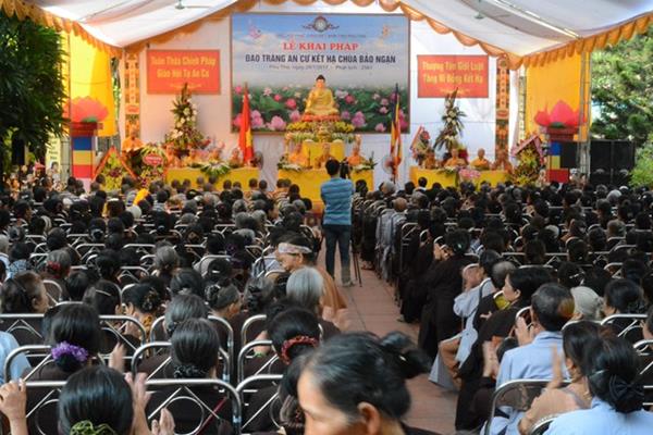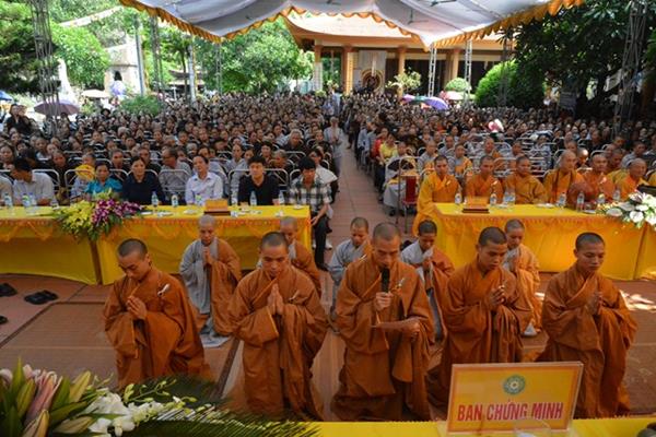 Đúng 08h00, buổi lễ bắt đầu niệm với hồng danh của đức Từ phụ Bổn sư Thích ca Mâu ni; chào Quốc kỳ, Đạo kỳ; Đại chúng hướng tâm tri niệm chư vị tổ sư, chư vị tiền bối hữu công, chư thánh tử đạo bên cạnh hướng vọng kỷ niệm 70 năm ngày thương binh liệt sỹ tưởng niệm anh linh các anh hùng Liệt sỹ; Đại đức Thích Từ Hiệp điều hành chương trình đã tuyên bố lý do; TT. Thích Minh Nghiêm có bài diễn văn khai mạc; ĐĐ. Thích Minh Tồn thay Ban thư ký thông qua chương trình tu học trong 3 tháng; các vị tân tiến Tỳ Kheo đã có lời tác bạch cầu pháp. Chư tôn đức đã có nghi thức khai pháp trong không khí trang nghiêm thanh tịnh với tâm thành cầu nguyện.