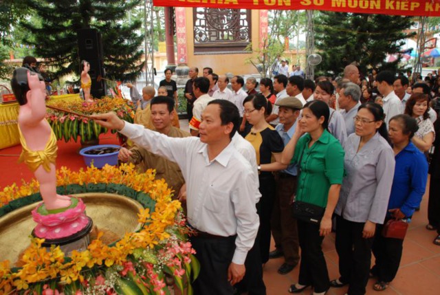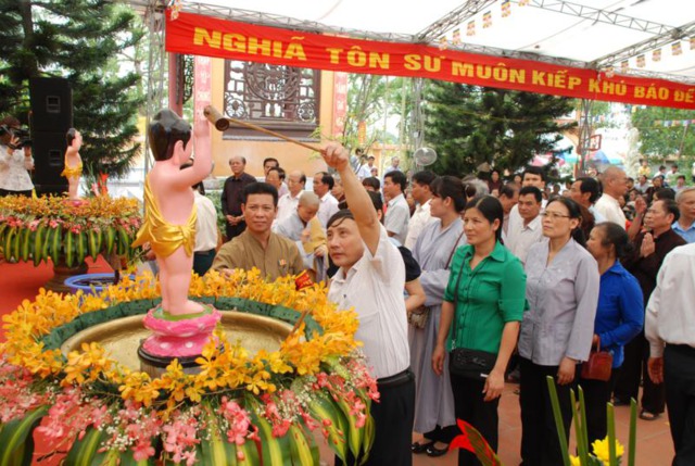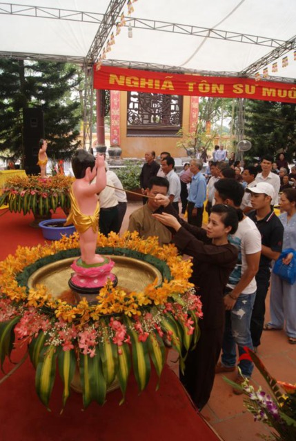 Sau lễ hành chánh, một thời kinh ngắn mừng Khánh đản, và lễ tắm Phật cũng được diễn ra trang nghiêm, thanh tịnh.