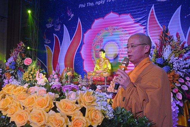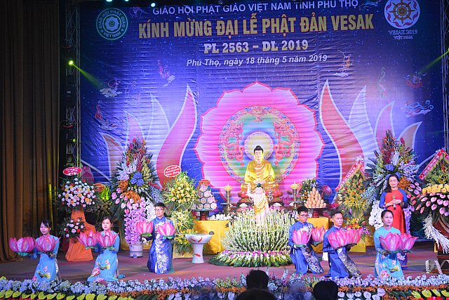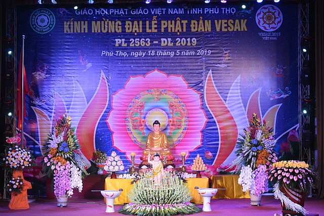 Vẫn theo thông lệ thường niên lễ đài Phật đản chính thức được tổ chức tại nhà Văn hóa Lao động tỉnh Phú Thọ vào ngày 14 tháng 4. Đúng 08 giờ 00 phút, Ban nghi lễ đã cung nghinh chư tôn đức Tăng Ni và quý đại biểu quang lâm lễ đài, hồng danh đức Bổn sư Thích ca vang lên trong không khí trầm hùng, lễ chào Quốc kỳ, Đạo kỳ, hội trường lắng động tất cả thanh âm vắng bặt nhập từ bi quán, tri ân các bậc tiền nhân, anh linh chư Thánh tử đạo nhân ngày Phật đản sanh.