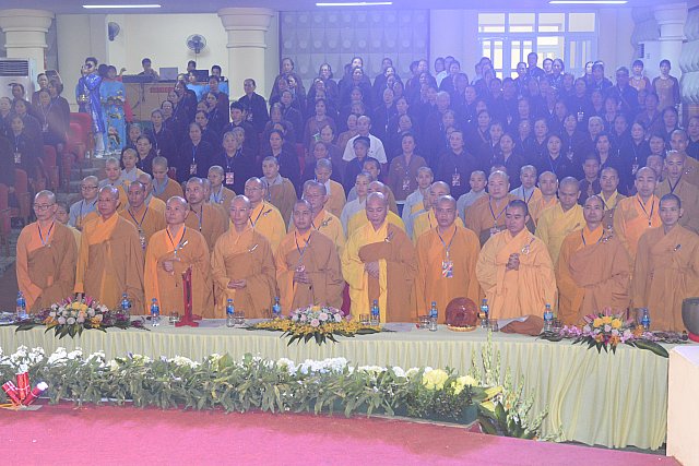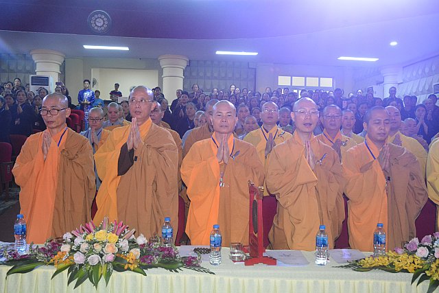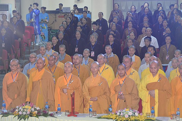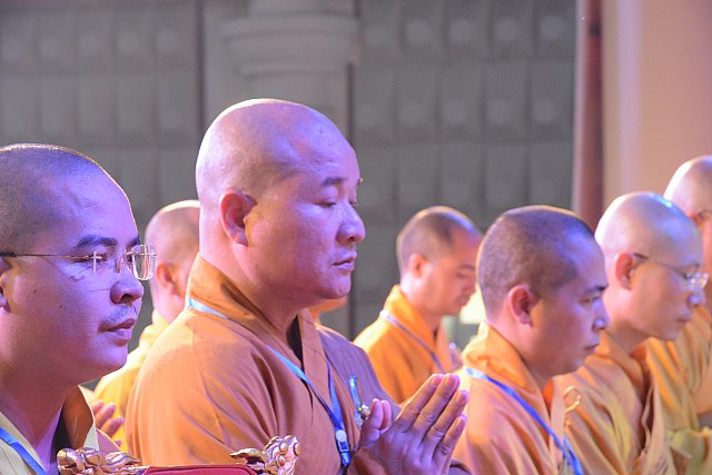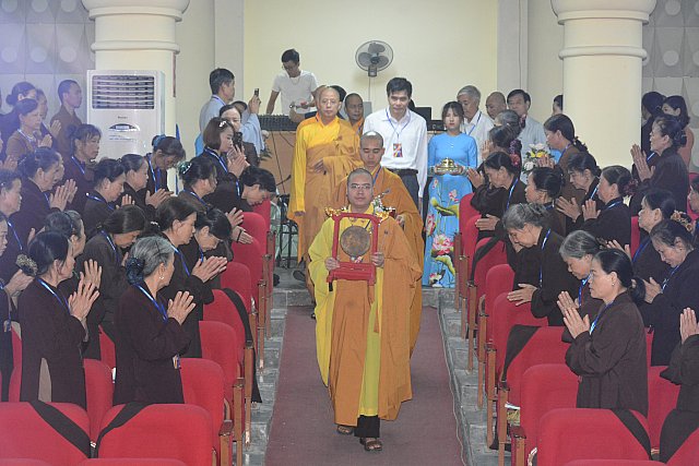 Hội chúng đã được nghe Thông điệp của Đức Pháp Chủ Giáo hội Phật Giáo Việt Nam Đại lão Hòa Thượng Thích Phổ Tuệ qua lời đọc của Thượng tọa Thích Minh Đức .