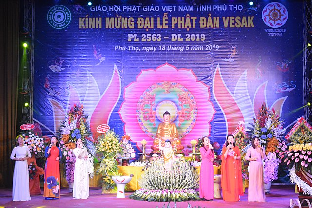 Nhân sự kiện trọng đại Phật giáo, các anh chị em Ca sĩ Phật tử Tp. Việt Trì đã dàn dựng tiết mục văn nghệ đặc sắc với chủ đề: “Việt Nam Phật Giáo Một Niềm Tin” cùng nhóm múa của trung tâm kỹ năng sống tài năng Việt dâng lục cúng kính mừng đại lễ.