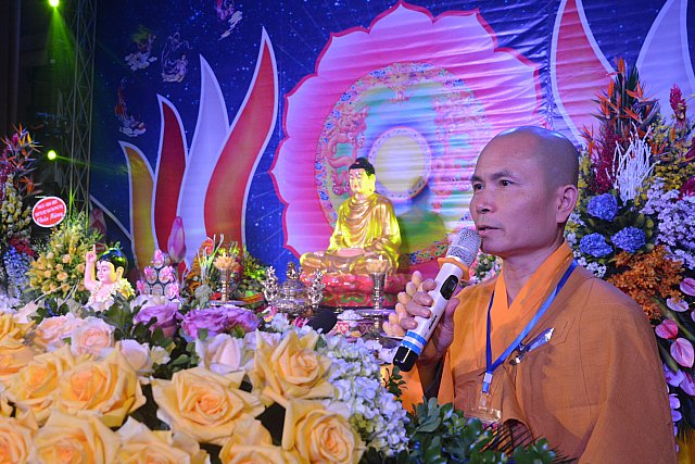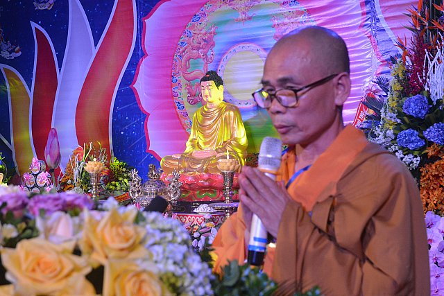 Thượng tọa Thích Minh Nghiêm đã tuyên đọc Diễn văn Phật Đản của Hòa thượng Thích Thiện Nhơn, Chủ tịch HĐTS TƯ GHPGVN. Ngài cũng đã nhấn mạnh công tác Phật sự trong bối cảnh xã hội hiện tại: “Trong bối cảnh thế giới đang phải đối mặt với những xung đột, khủng bố, chiến tranh, bất bình đẳng, khủng hoảng môi trường sinh thái và biến đổi khí hậu, sự phát triển như vũ bão của khoa học công nghệ, cuộc cách mạng công nghiệp 4.0 đang làm thay đổi mọi mặt đời sống và các cấu trúc truyền thống, thì hơn lúc nào hết, chúng ta phải cùng nhau phát huy những giá trị cốt lõi của Đạo Phật về tinh thần khoan dung, vô ngã, vị tha, hòa hợp và hòa bình thông qua con đường Bát chánh đạo nhằm góp phần giải quyết những thách thức vấn nạn toàn cầu. Điều đặc biệt nhất là vạn vật trở nên kết nối, mọi thứ đều có thể xóa nhòa khoảng cách về mặt địa lý, các cộng đồng và các quốc gia ngày càng trở nên phụ thuộc lẫn nhau, thế giới dần dần bắt đầu giống như một xã hội toàn cầu. Chính vì vậy, để giải quyết các vấn đề đặt ra cần thiết phải có một sự lãnh đạo toàn cầu. Sự lãnh đạo này phải đảm bảo được sự bình đẳng, dung hòa được lợi ích và hóa giải được xung đột giữa các niềm tin, các nền kinh tế, các nền văn hóa, các tầng lớp xã hội, hay các quốc gia lãnh thổ, cân bằng được môi trường, hệ sinh thái. Chủ đề của Đại lễ Vesak Liên hợp quốc 2019 là “Cách tiếp cận của Phật giáo về sự lãnh đạo toàn cầu và trách nhiệm cùng chia sẻ vì xã hội bền vững” cho thấy tầm vóc và ý thức trách nhiệm cao cả của Phật giáo trước tình hình biến động của thế giới trên nhiều phương diện đời sống, qua đó cho thấy thái độ tích cực cũng như niềm tin về khả năng góp phần hóa giải những vấn nạn thời đại của Phật giáo ngày càng được khẳng định. Trong chương trình phát triển bền vững toàn cầu của Liên hợp quốc đến năm 2030 nhắm tới đích xóa bỏ nghèo đói, đảm bảo cuộc sống khỏe mạnh và nâng cao phúc lợi, đảm bảo giáo dục chất lượng, bình đẳng giới, thúc đẩy tăng trưởng kinh tế bền vững, tiêu thụ và sản xuất bền vững, ứng phó với biến đổi khí hậu, đảm bảo nguồn tài nguyên và đa dạng sinh học, thúc đẩy xã hội hòa bình, đem lại sức sống mới cho quan hệ đối tác toàn cầu để phát triển bền vững. Hội thảo khoa học quốc tế tại Đại lễ Vesak Liên hợp quốc năm nay mong muốn tăng cường sự hợp tác giữa các cộng đồng và tổ chức Phật giáo thế giới nhằm tìm kiếm và ứng dụng các giải pháp Phật giáo đối với các mục tiêu mà Liên hợp quốc theo đuổi…