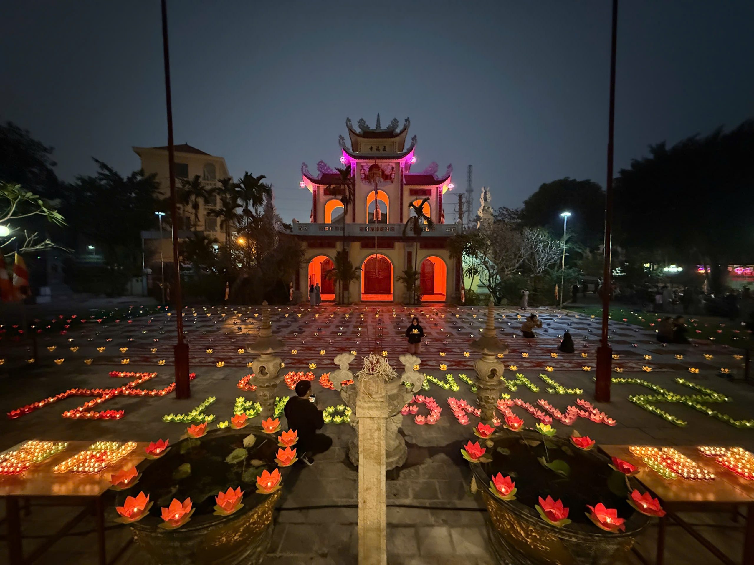 Giây phút thiêng liêng nhất là khi Thượng tọa Thích Minh Thuận tiếp nhận ngọn lửa từ bàn thờ Phật, truyền sang chư Tôn đức và lan tỏa đến hàng trăm Phật tử. Trong không gian tĩnh lặng, hàng trăm đốm sáng lung linh tạo nên một biển sáng nhiệm mầu, dâng lên lòng thành kính tri ân công đức vô lượng của Phật Đà.