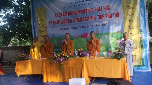 Khóa học đã diễn ra trong 03 ngày, từ ngày 12-14/11/2011, hơn 500 Phật tử tiêu biểu được tuyển chọn tại các xã đã về tham dự khóa học các Phật tử đã được bồi dưỡng 09 chuyên đề sau: Luận về Tam Bảo, Luận về Tam quy Ngũ giới, Luận về luật Nhân quả, Luận về Luân hồi – Nghiệp báo, Luận về Tứ Diệu Đế, Ý nghĩa của việc thờ Phật – lạy Phật – cúng Phật, Bổn phận của Phật tử tại gia, Lược giảng Yếu chỉ của Pháp môn Tịnh độ, trích giảng chủ trương chính sách của Đảng – nhà Nước về các hoạt động tôn giáo.