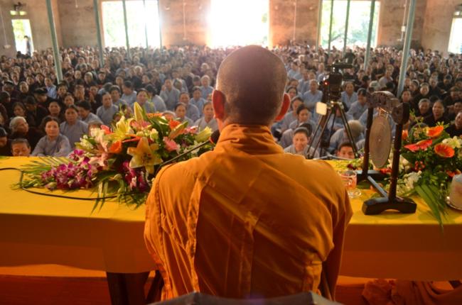 Sự diễn giảng được minh họa bằng những lời dạy thiết thực của Đức Phật cùng những hình ảnh đời thường đã làm nhiều Phật tử phấn khởi vì khi được biết rằng trí tuệ đưa đến giác ngộ, giải thoát không phải chỉ dành riêng cho giới xuất gia, giàu có hay học thức cao mà cho tất cả mọi người, không phân biệt nghèo, giàu có học thức hay thiếu học thức! Chỉ cần chánh niệm – tỉnh giác, một thuật từ khác của Niệm Phật, phân biệt được đâu thật đâu ảo là có thể nói đã bắt đầu đặt chân vào thánh đạo và sự giải thoát chỉ còn là thời gian… Sự say mê thuyết giảng cùng sự chăm chú, vui mừng của thính giả đã làm thời gian như ngừng trôi… Nhưng thôi, đã 2 giờ rồi Thượng tọa, tiếng nhắc nhở của một vị thầy đã làm buổi giảng đành phải kết thúc sớm.