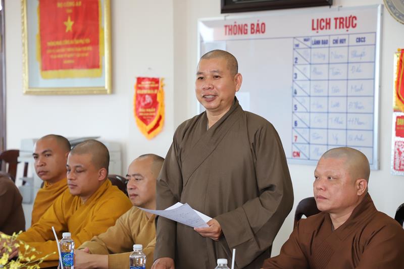 Kết thúc buổi làm việc, ĐĐ.Thích Nguyên Minh – Ủy viên HĐTS, Phó trưởng Ban Thường trực BTS GHPGVN tỉnh đã phát biểu cảm tạ tri ân chư Tôn đức đã quang lâm và trao đổi với Ban trị sự tỉnh, mong rằng trong thời gian tới sẽ nhận được nhiều sự giúp đỡ hơn nữa từ Ban hướng dẫn Phật tử trung ương cũng như Phân bân Phật tử Dân tộc trung ương để góp phần vào sự thành tựu các công tác Phật sự của BTS cũng như Phân ban Phật tử Dân tộc tỉnh, cầu chúc Chư tôn đức trong phái đoàn dồi dào tâm lực, trí lực,thành tựu mọi công tác Phật sự.