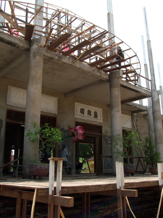 Lắp đặt lễ đài tại chùa Tỉnh hội