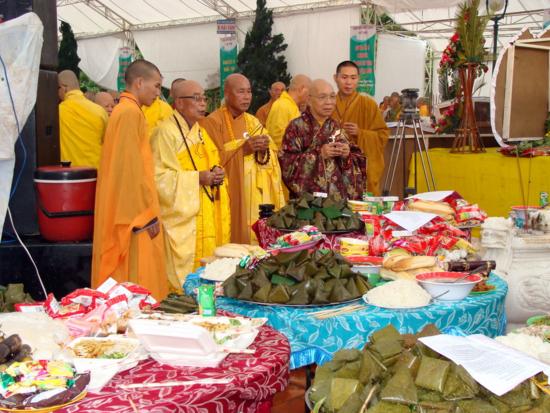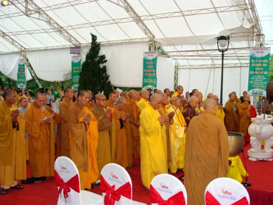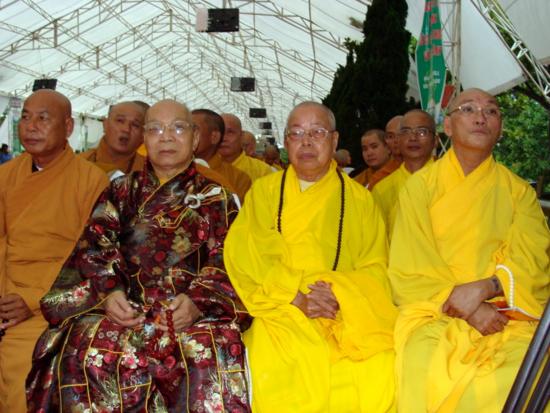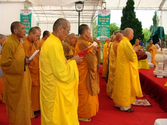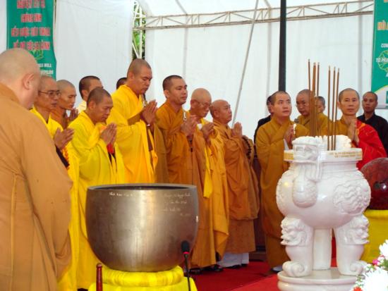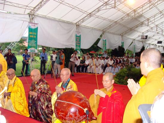 Trước giờ khai lễ, Chư tôn Hòa thượng, chư Thượng tọa trong Ban chứng minh, và ông Hồ Huy, ông Nguyễn Trí Toàn, ông Đỗ Xuân Công được BTC mời đến trước lễ đài niêm hương bạch Phật.